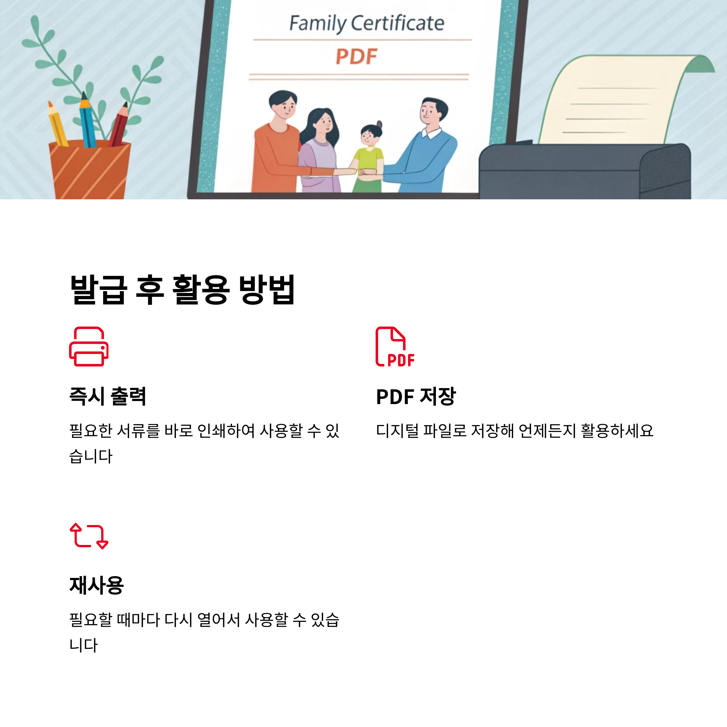 📌 각종 행정 업무 → 필요할 때 즉시 발급 & 출력 가능!
