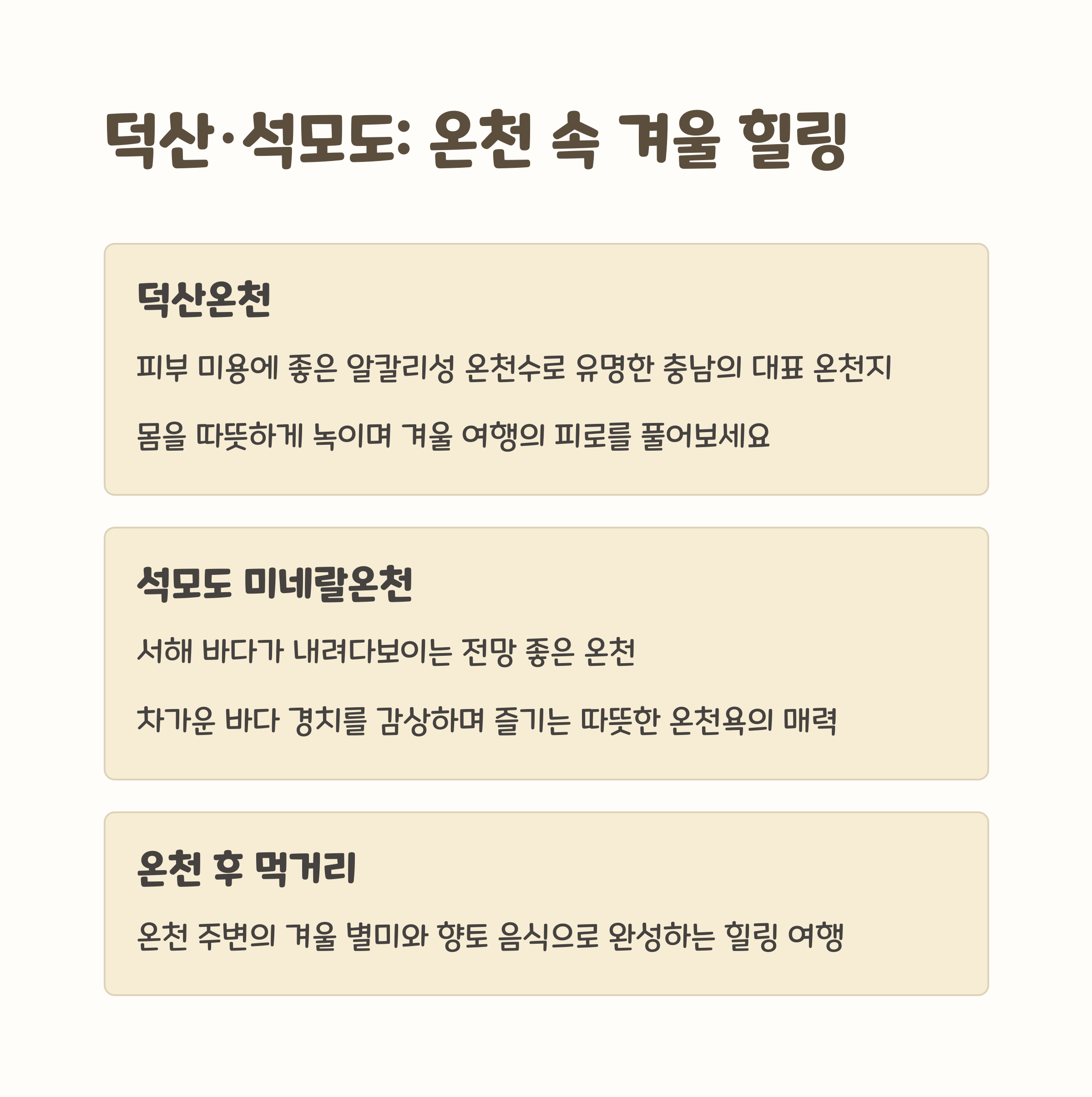 여기에 따끈한 온천이나 따사로운 힐링 코스까지 더해지면