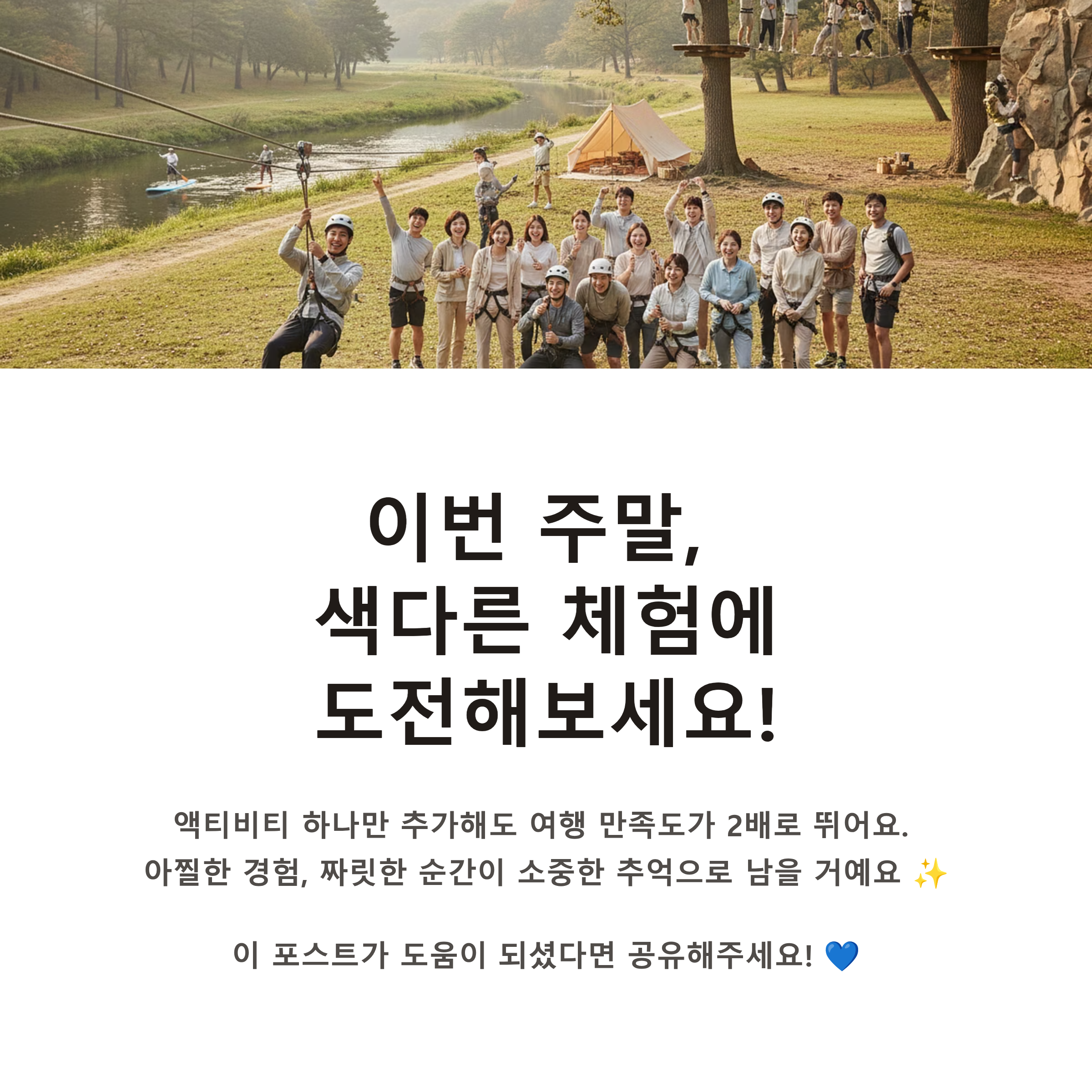 국내에서도 이렇게나 다양한 액티비티를 즐길 수 있다는 거, 오늘 처음 알게 되셨다면 완전 성공이에요!