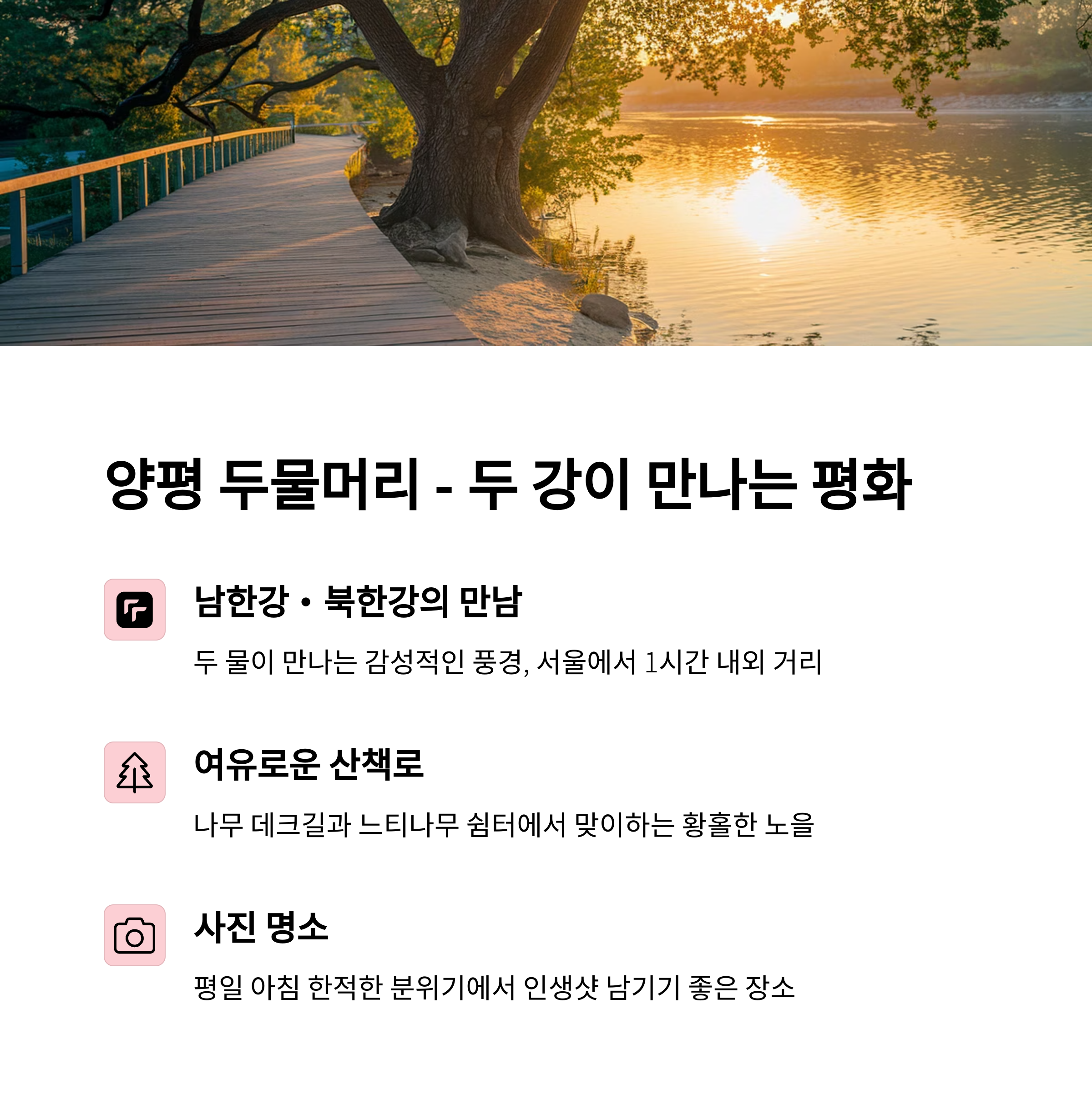 1. 양평 두물머리 – 새벽 안개 속 걷기, 명상 그 자체🌫️