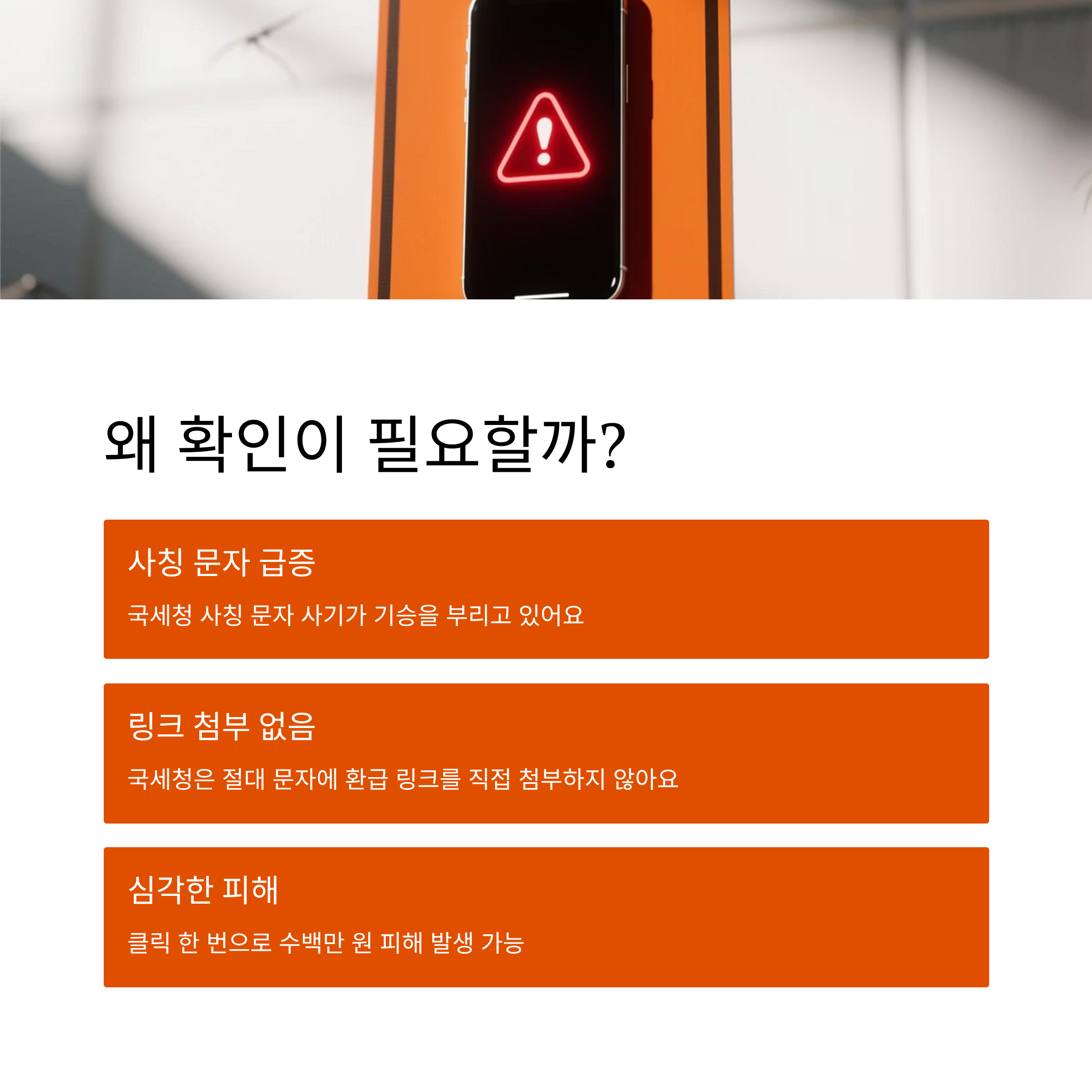 하지만 국세청은 절대 문자에 환급 링크를 직접 첨부하지 않아요.