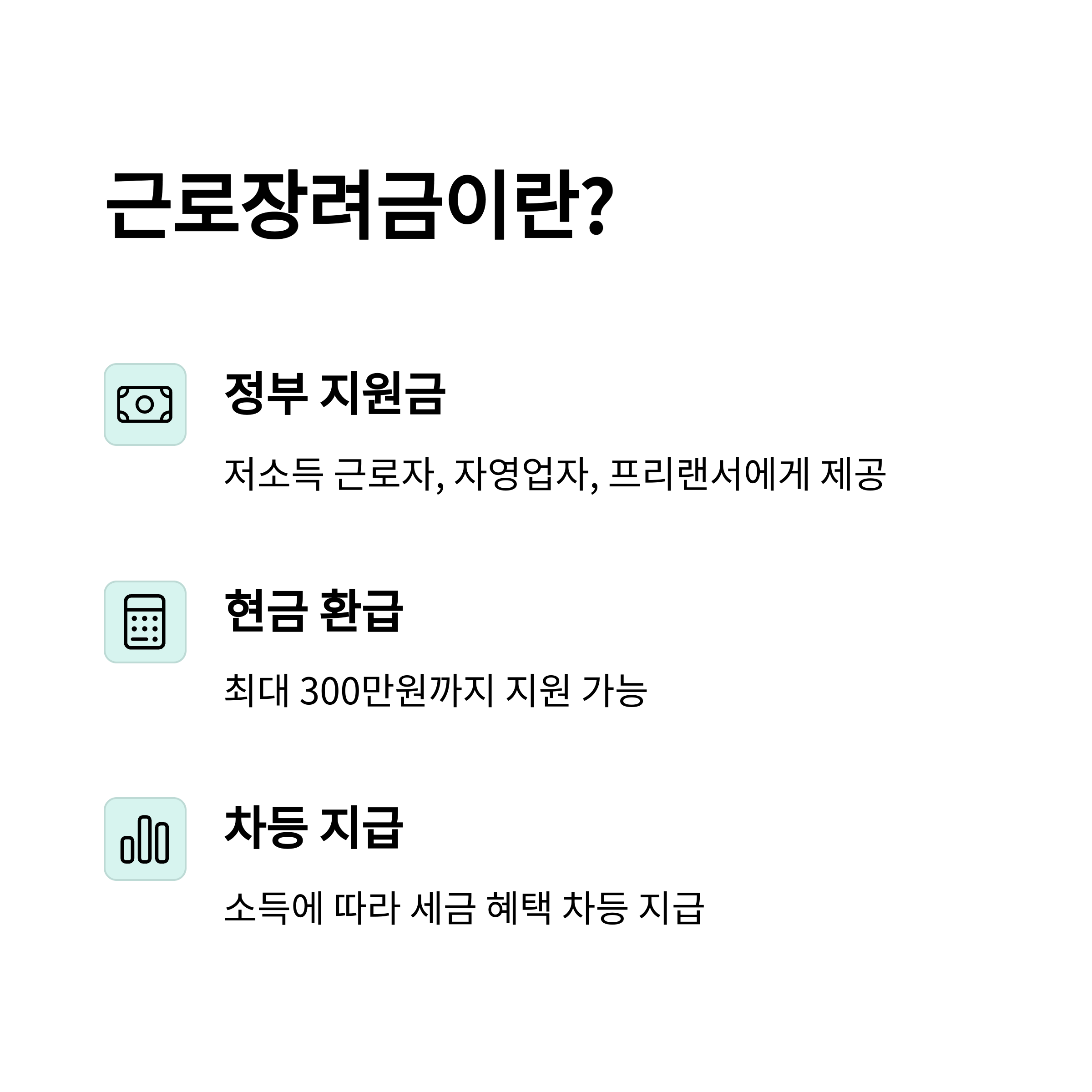 근로를 성실히 했지만 소득이 낮은 사람에게 주는 현금 지원금!