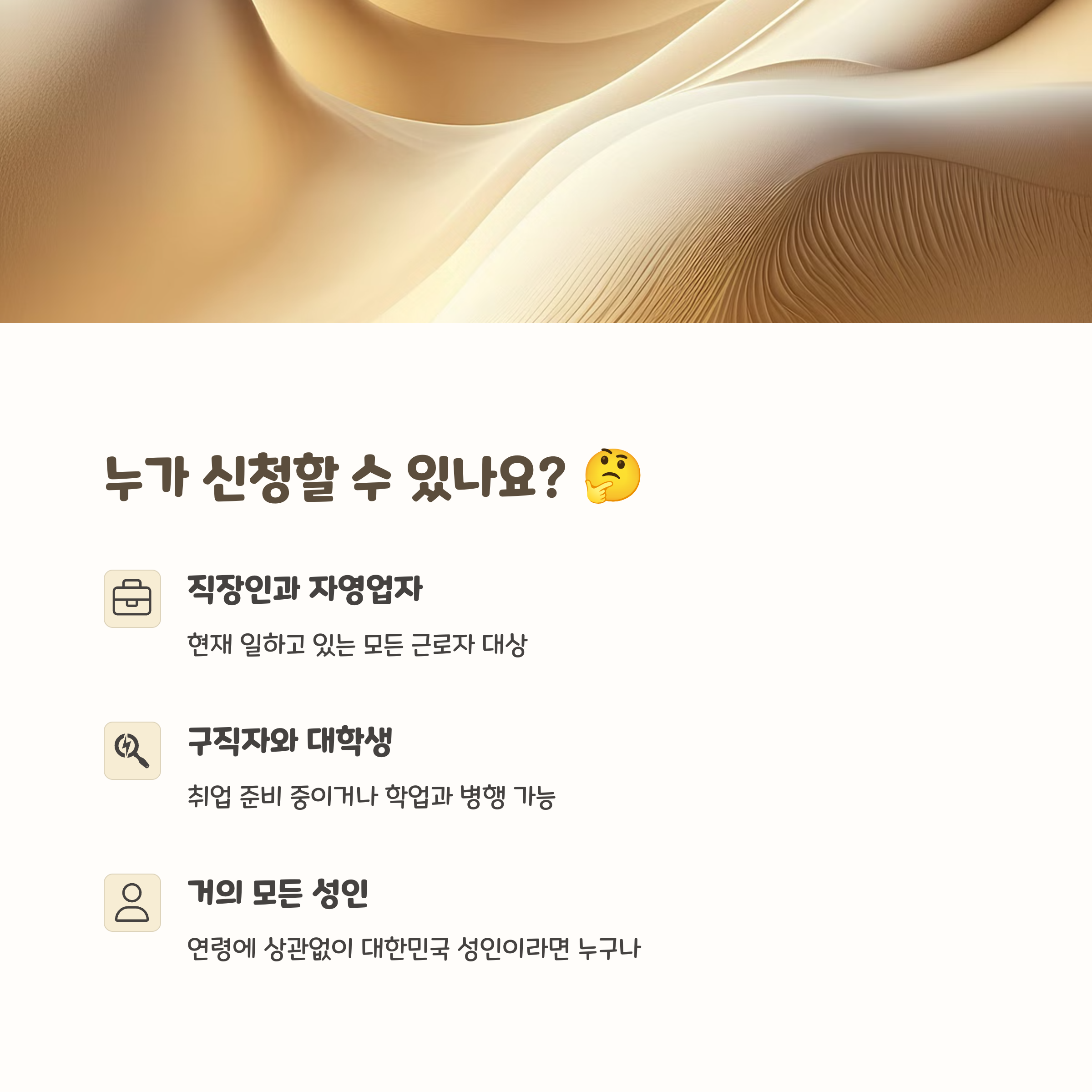 👉 YES! 요즘은 재직자도 가능해요~ 다만 연소득 5천만 원 이하 조건이 걸릴 수도 있으니 꼭 확인!
