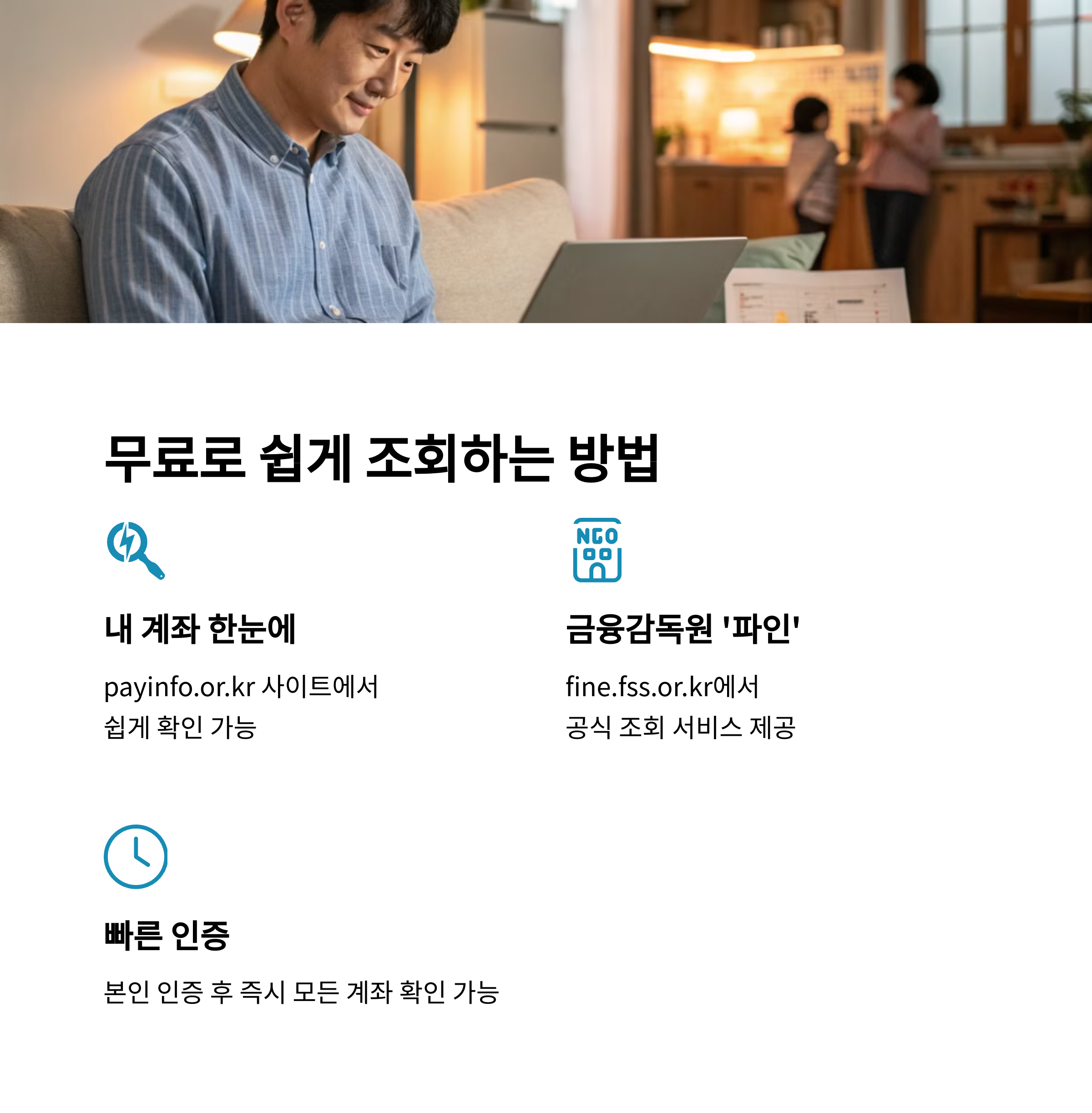 '내 계좌 한눈에'나 금융감독원 ‘파인(FINE)’에서 무료로 이용 가능하니 안심하고 조회하세요!
