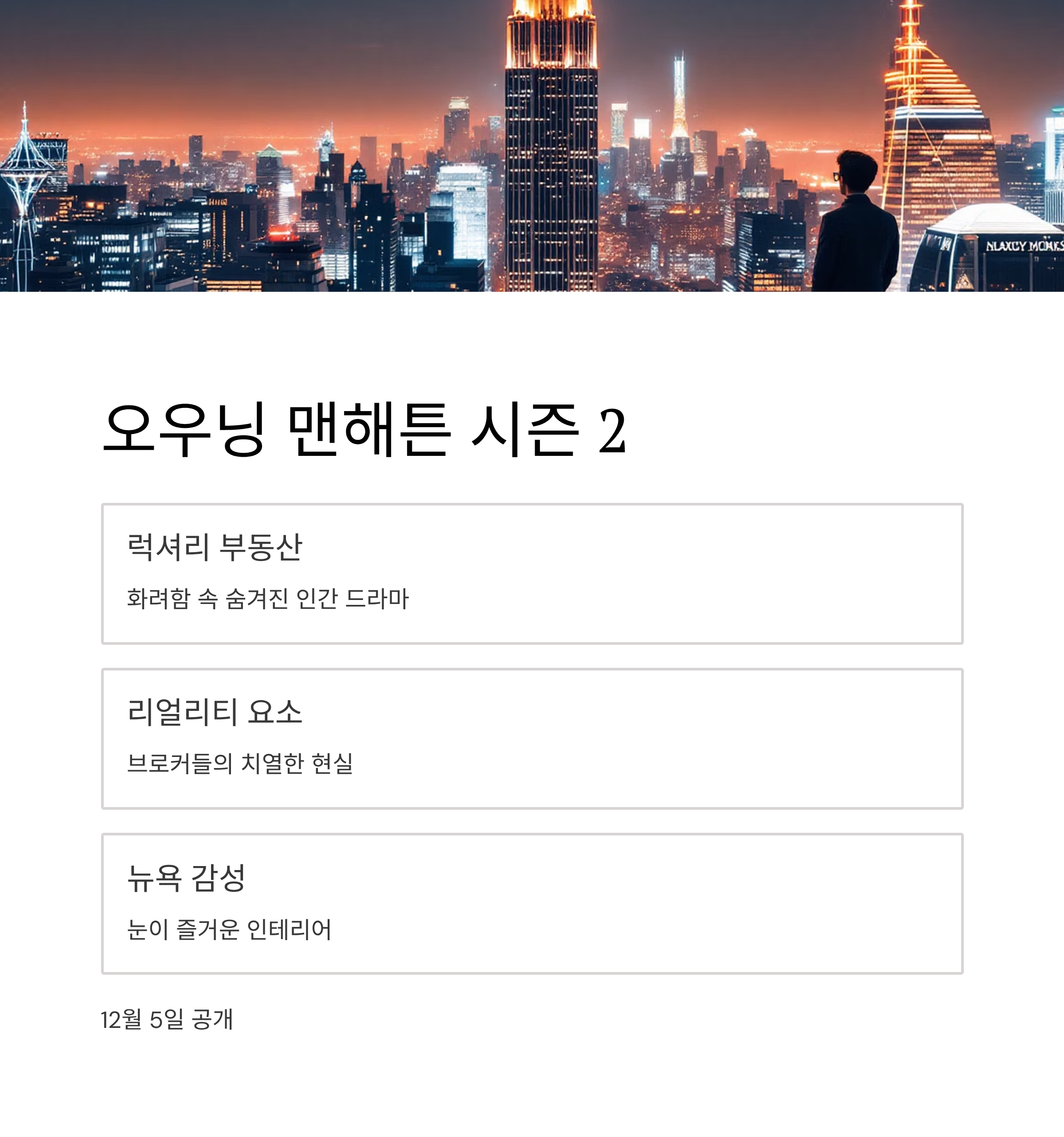 시즌 1에 빠졌던 분들이라면 12월 5일 공개될 시즌 2도 기대하실 거예요.