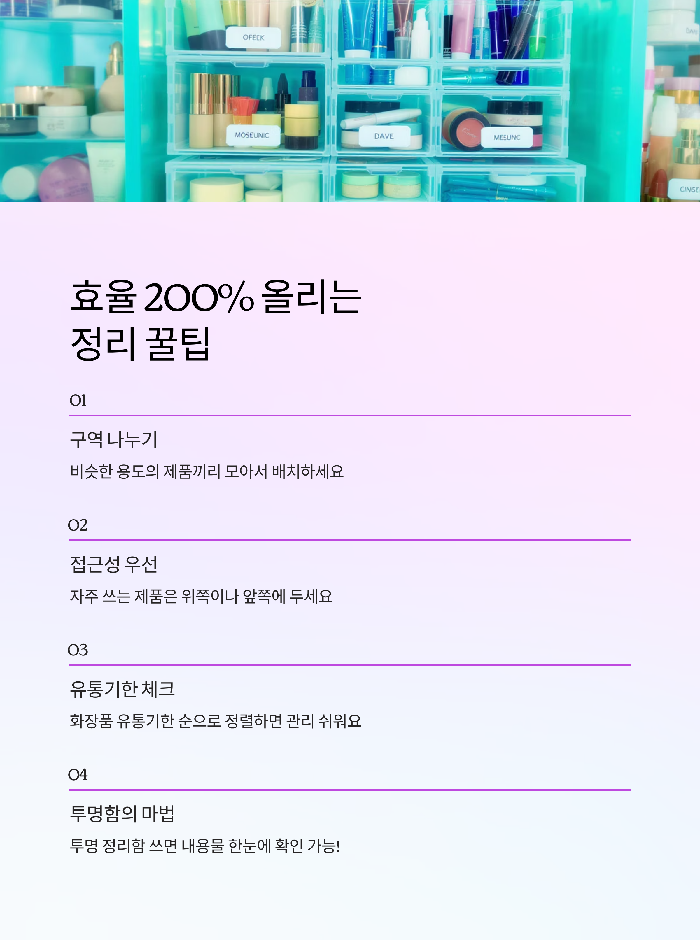 화장품 정리만 잘 해도 일상이 훨씬 편해진다는 거, 해보면 정말 실감하게 돼요.