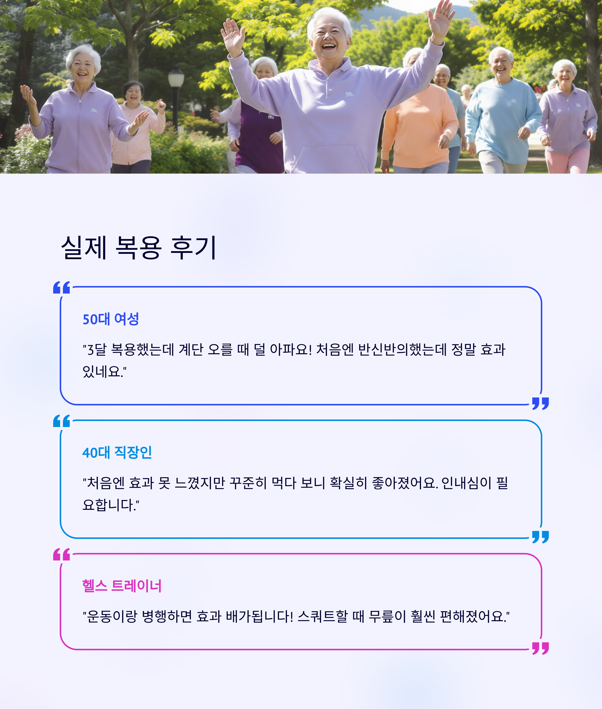 - "3달 복용했는데 계단 오를 때 덜 아파요!" - 50대 여성