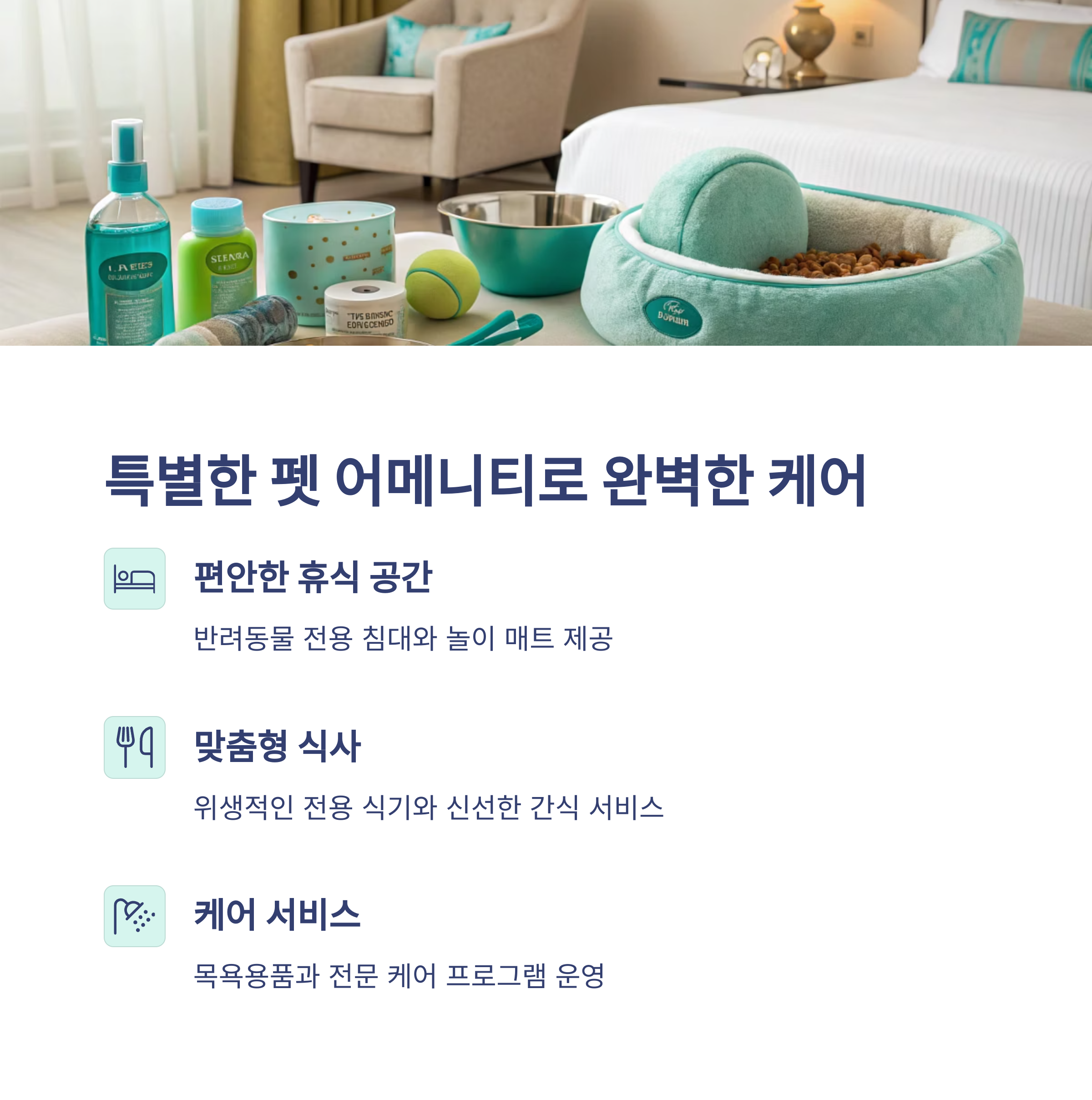 펫 전용 어메니티까지 준비되어 있는 데다가,