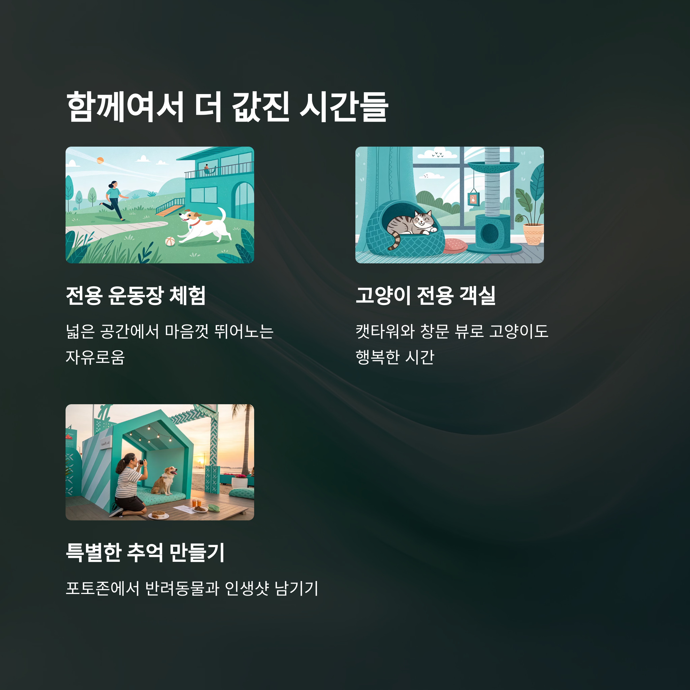 어디까지 반려동물을 케어해주는지, 숙소 분위기는 어떤지,