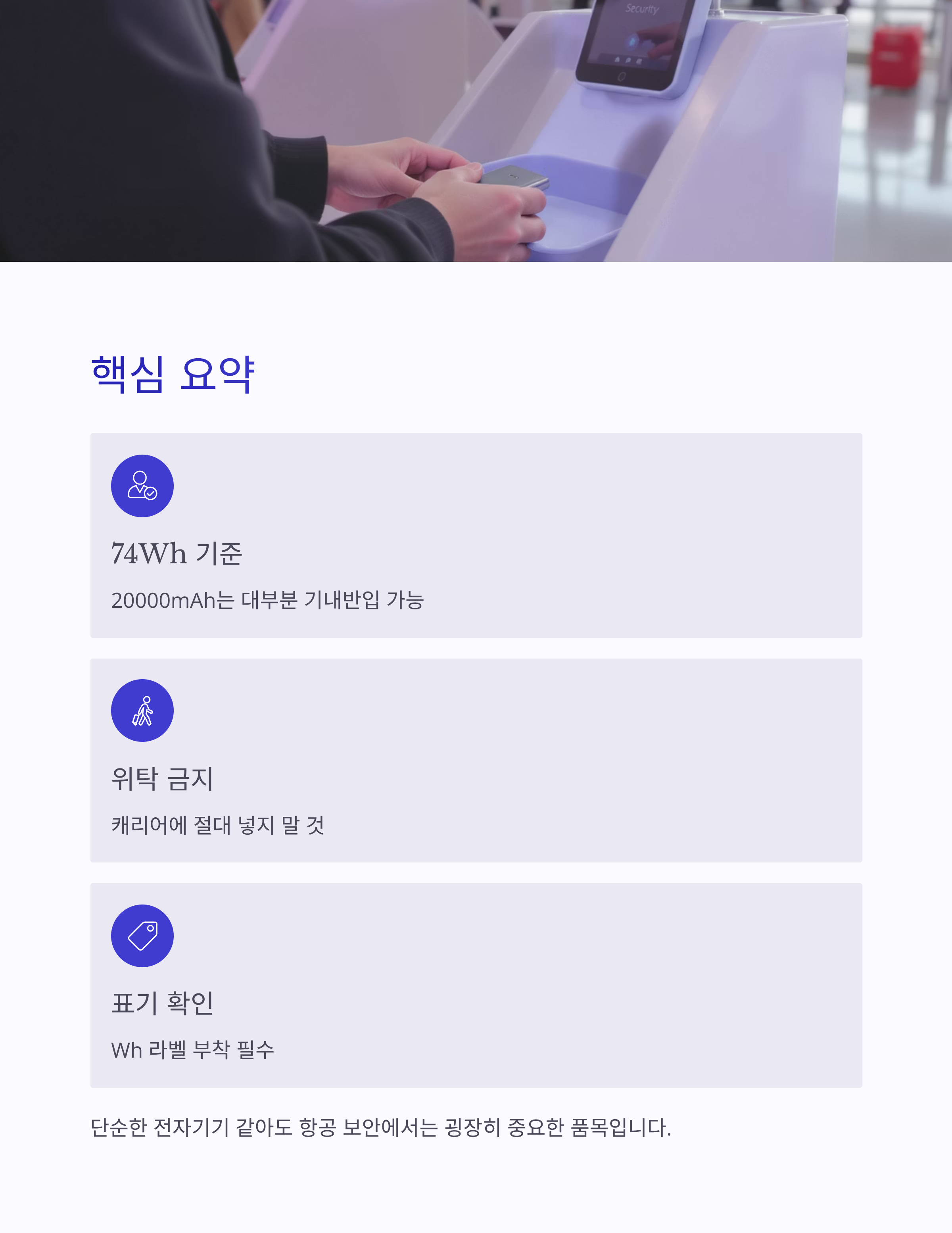 단순한 전자기기 같아 보여도, 항공 보안에서는 굉장히 중요한 품목이라는 점을 꼭 기억해주세요.