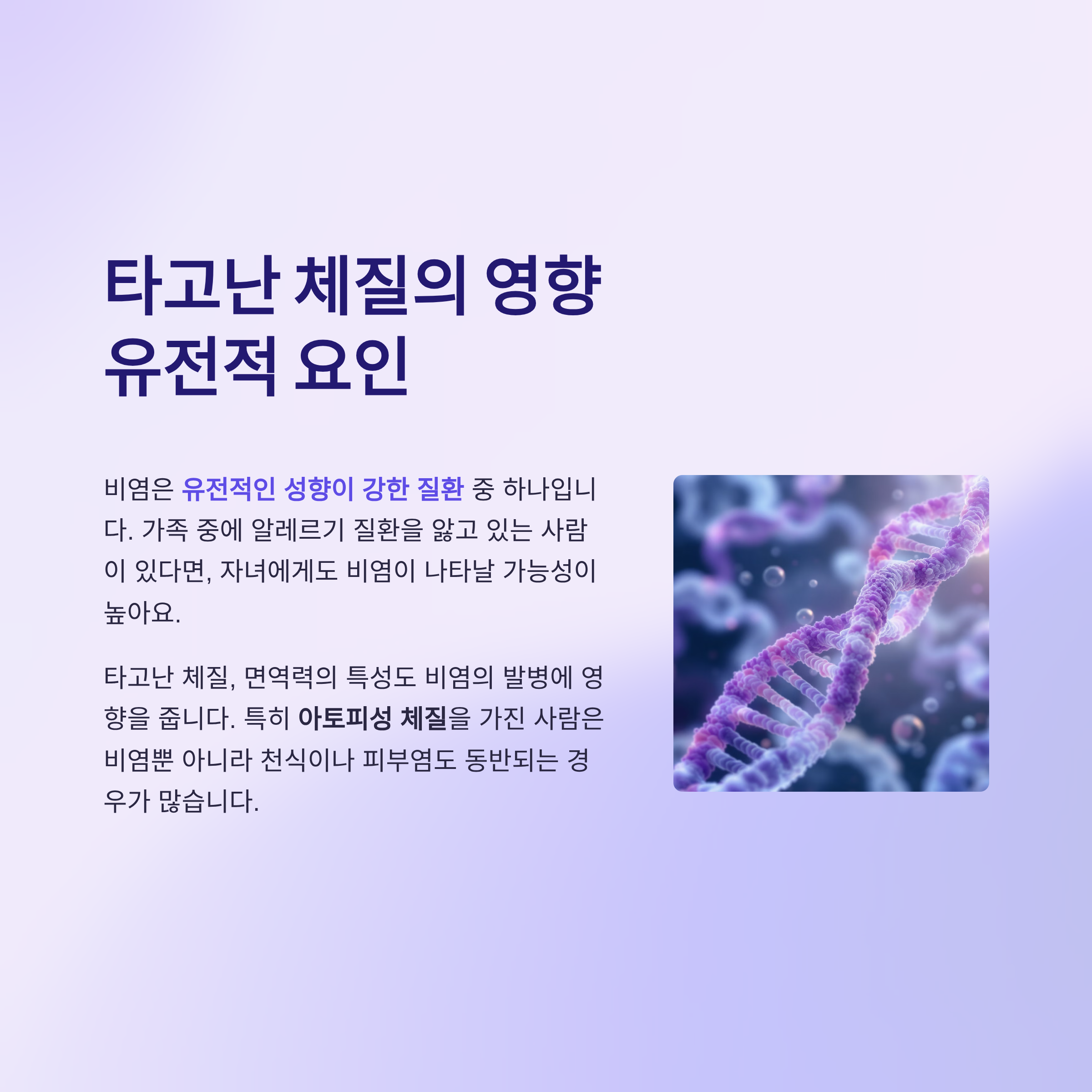 이뿐만 아니라 타고난 체질, 면역력의 특성도 비염의 발병에 영향을 줍니다.