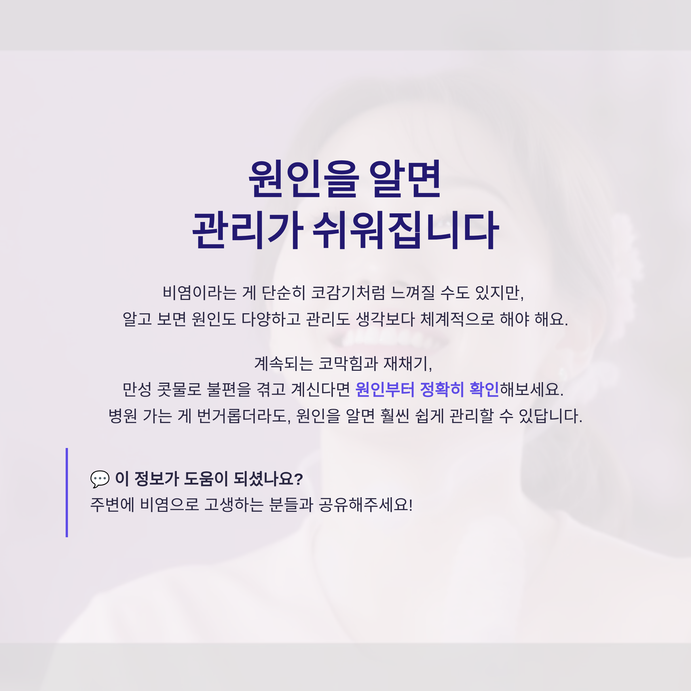여러분도 혹시 계속되는 코막힘과 재채기, 만성 콧물로 불편을 겪고 계신다면 원인부터 정확히 확인해보세요.