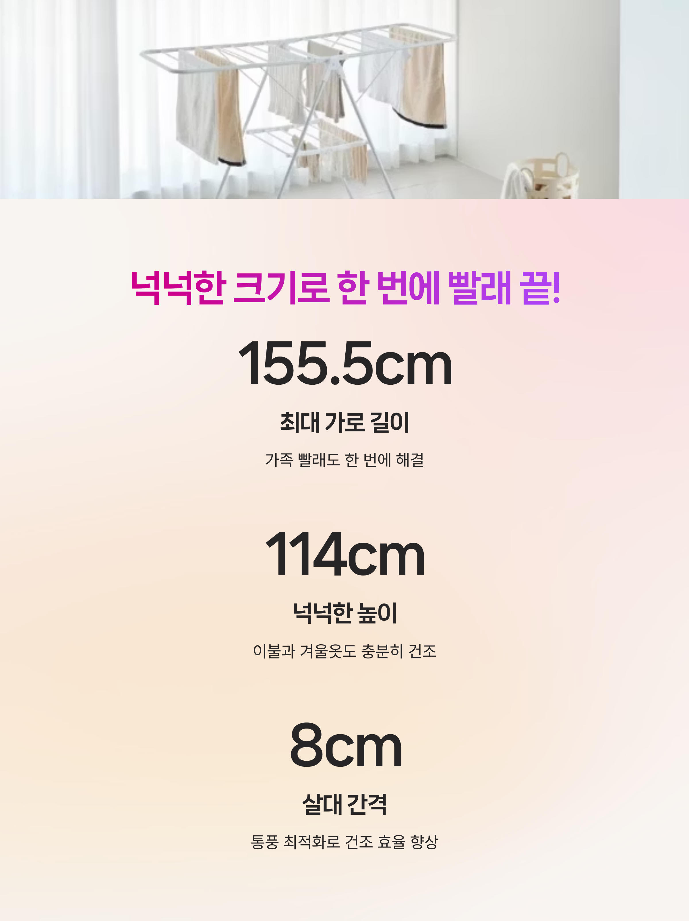 특히 양쪽 날개 쫙 펴면 길이가 길어져서 이불 빨래도 가능하더라구요.