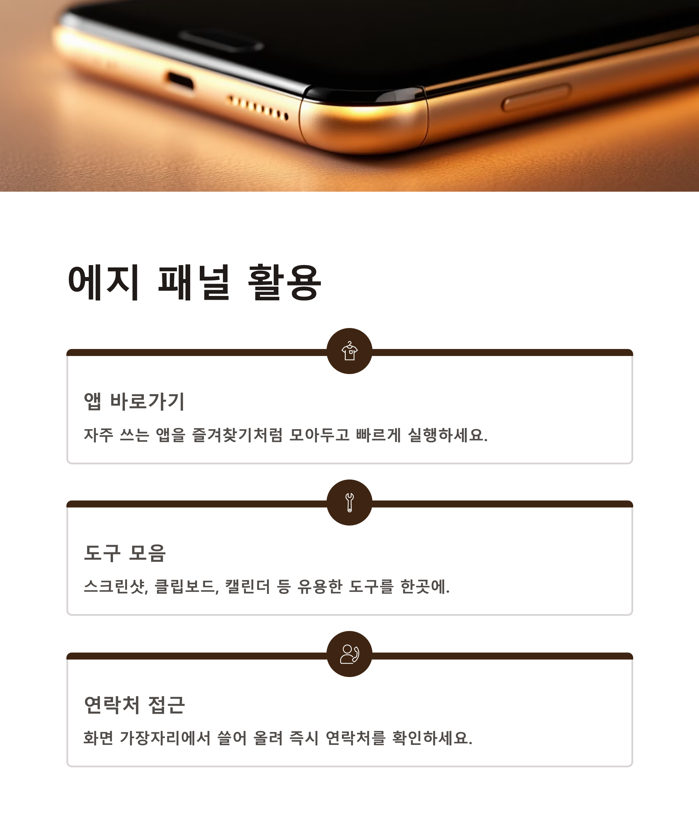 화면 가장자리에서 쓸어 올려 자주 쓰는 앱이나 도구를 빠르게 불러올 수 있는 에지 패널은 멀티태스킹에 탁월합니다.