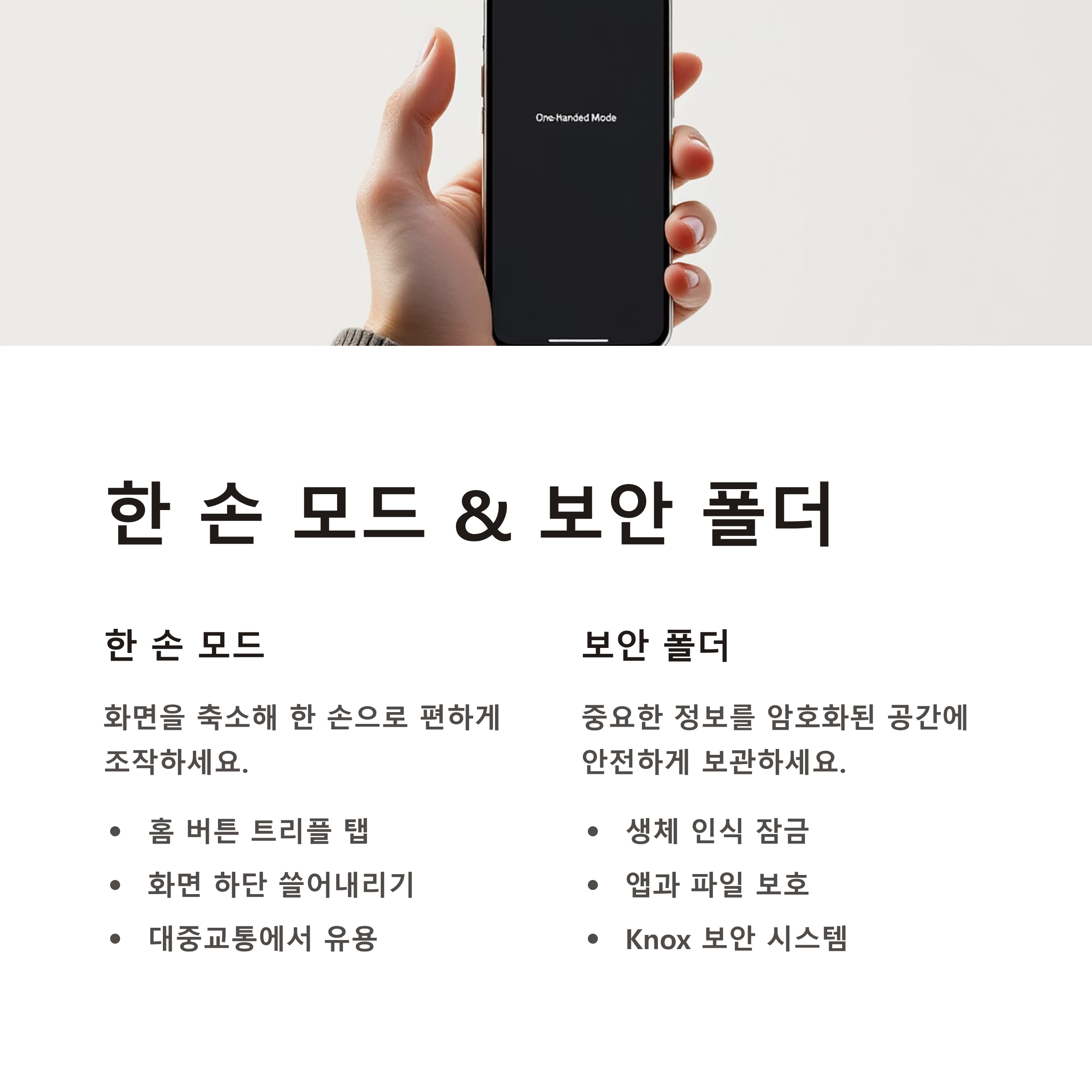 대화면 스마트폰 사용 시 한 손으로 조작해야 할 때, 특히 대중교통 이용 중 유용합니다.