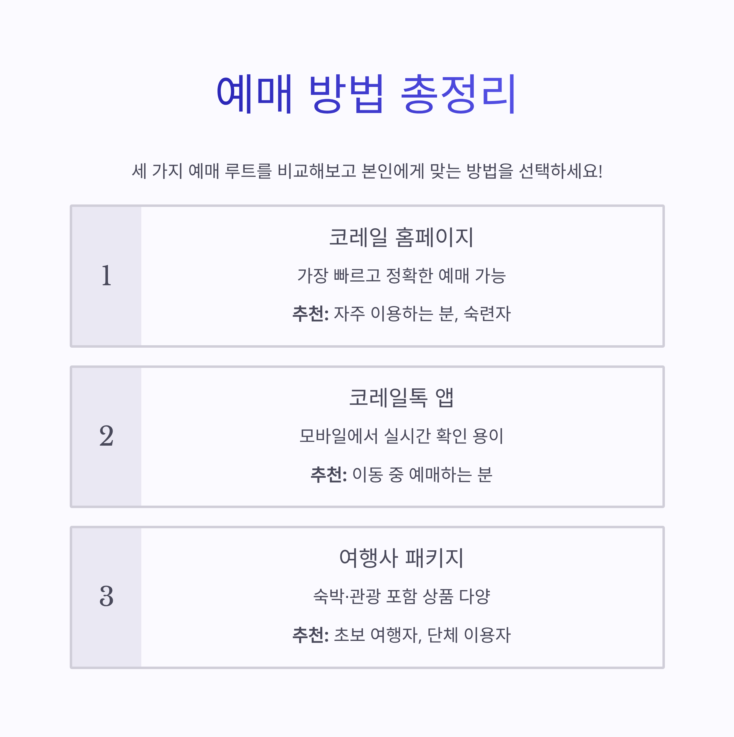 예매 방법 총정리 (코레일, 앱, 여행사)