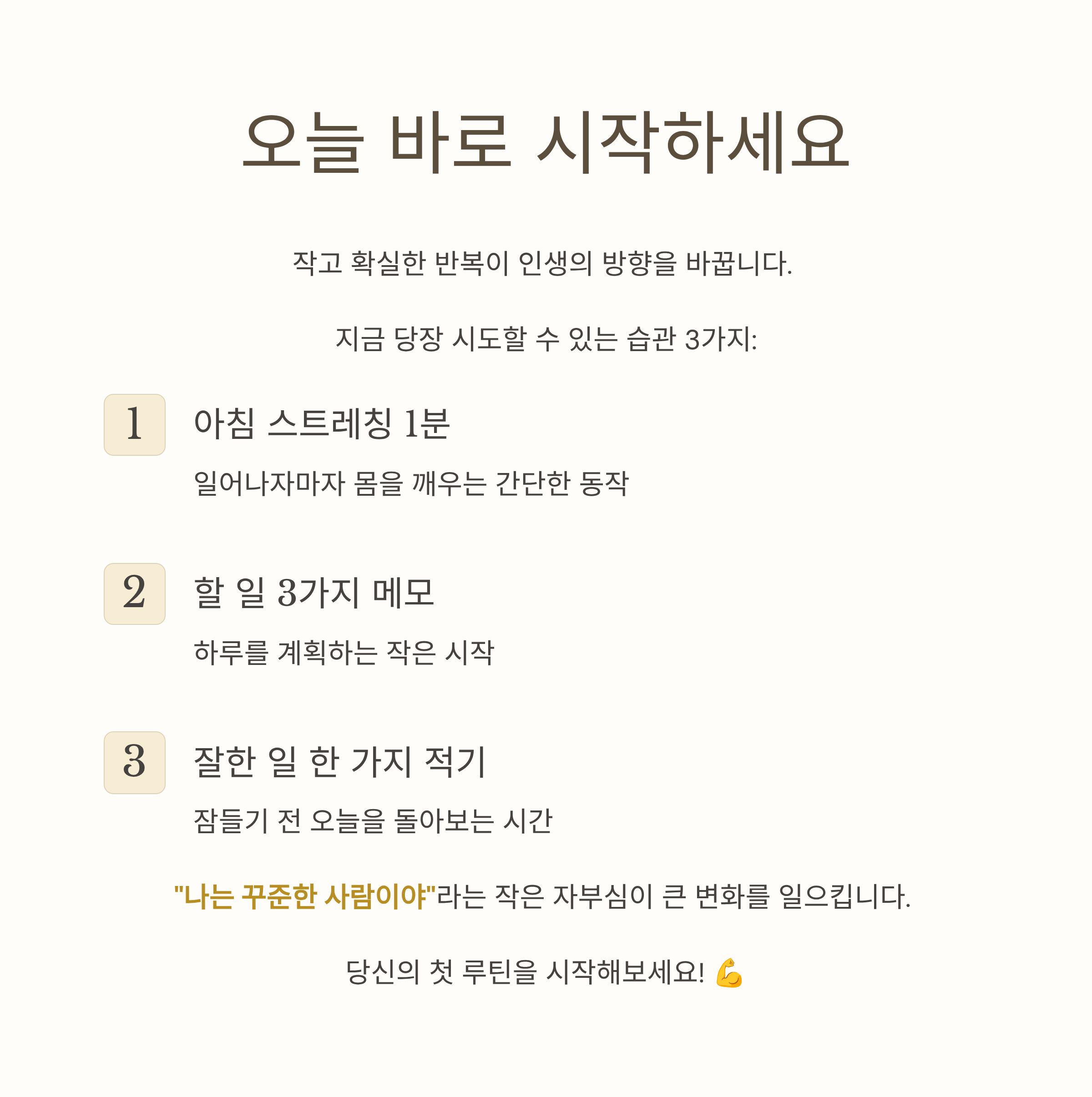 당신도 오늘 단 하나의 루틴부터 시작해보세요. ‘나는 꾸준한 사람이야’라는 작은 자부심이,