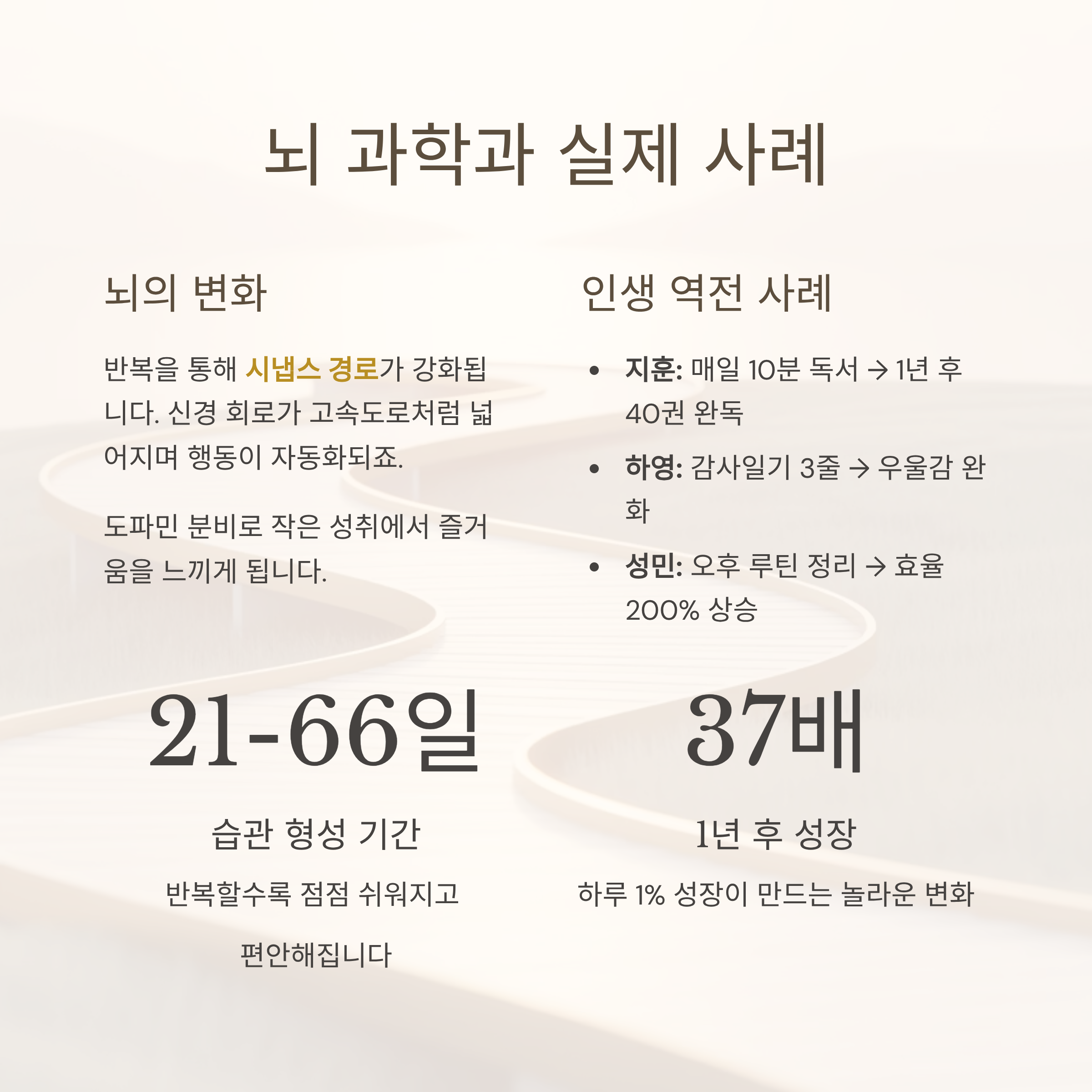 결국, 성공한 사람들은 의지가 강한 게 아니라, ‘뇌를 습관적으로 훈련’한 거예요.