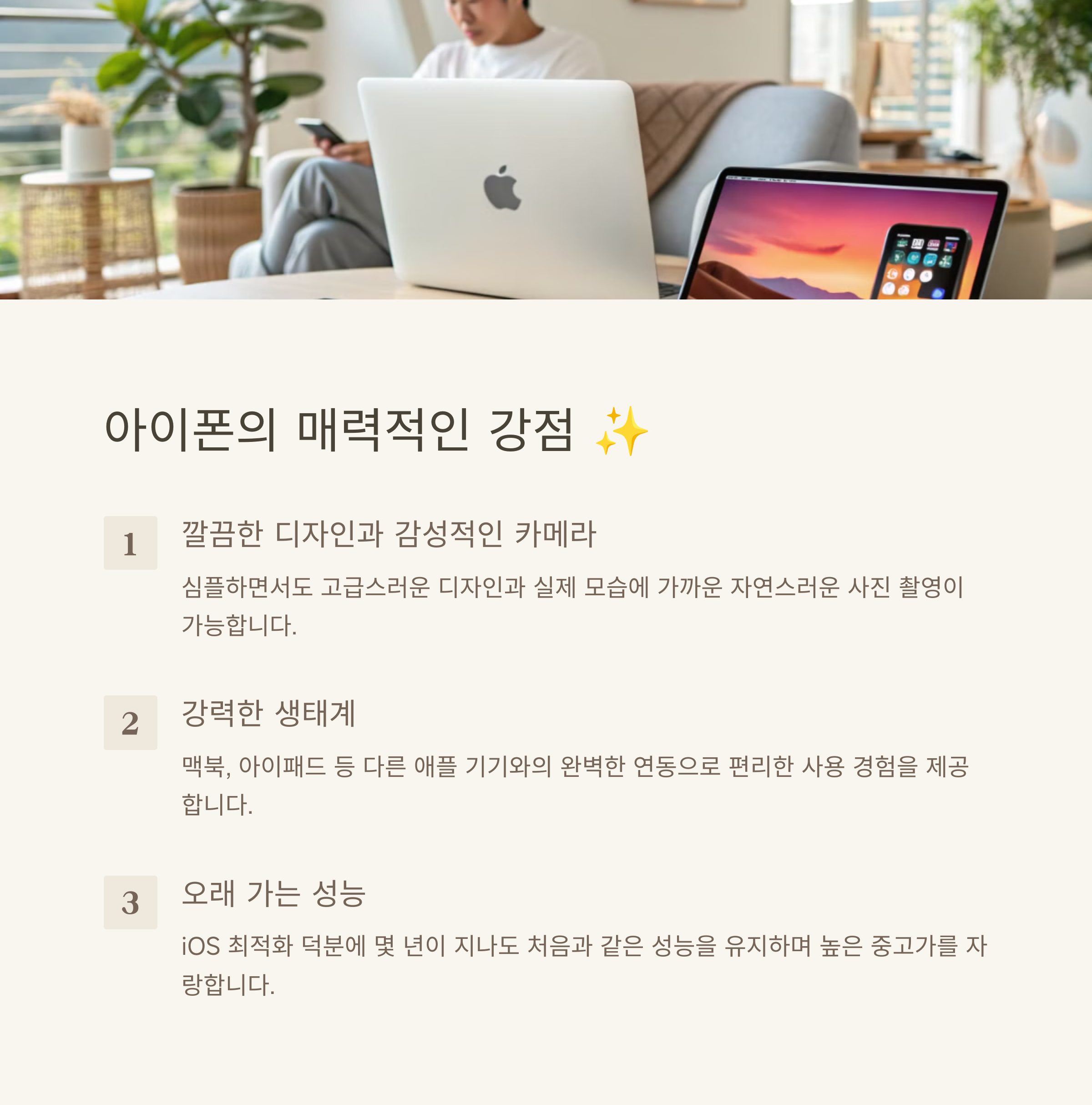 - 아이폰: 미니멀하고 고급스러운 디자인, 감성甲