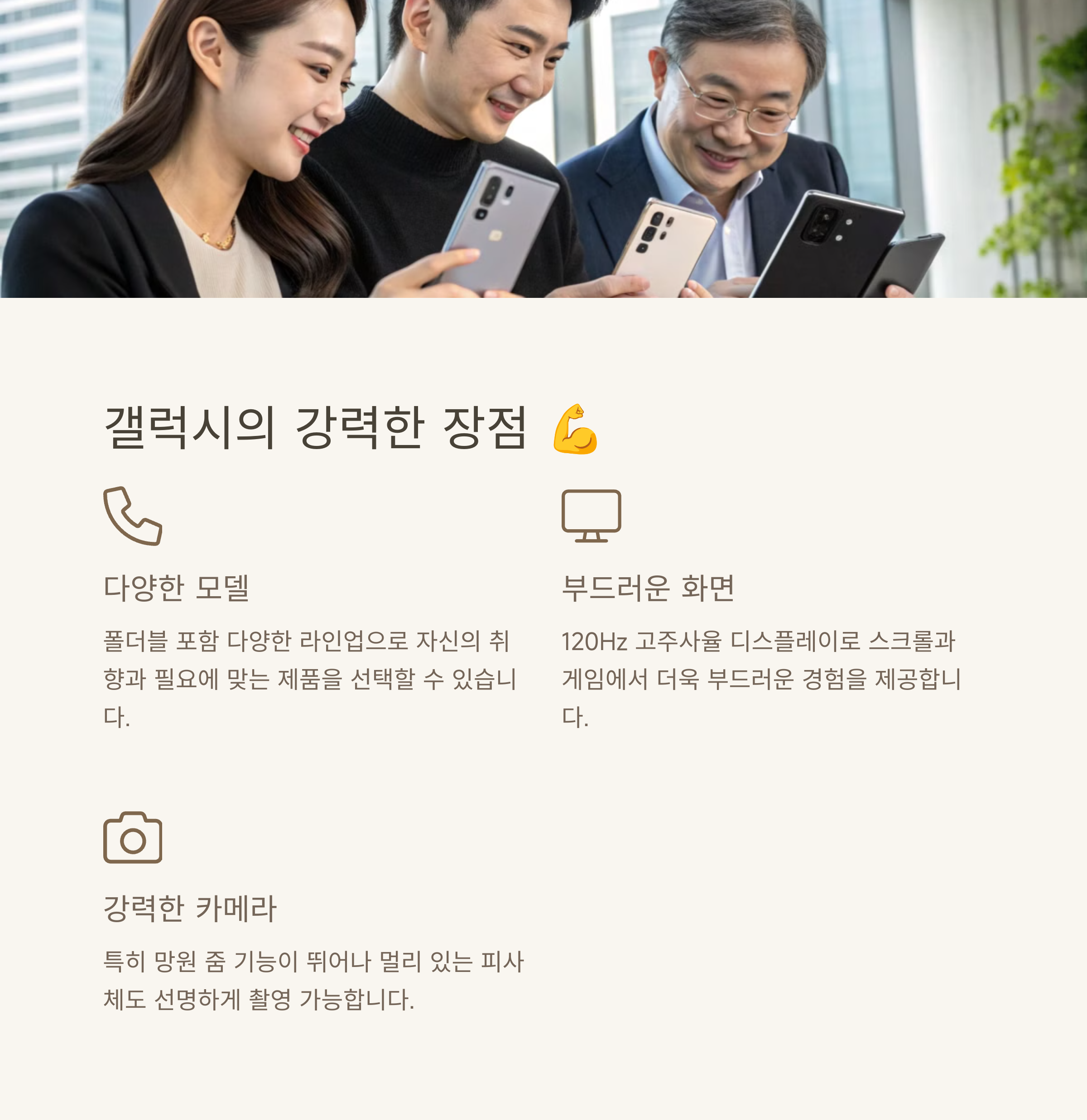 - 갤럭시: 삼성 생태계 있지만, 아이폰만큼 강력하진 않음