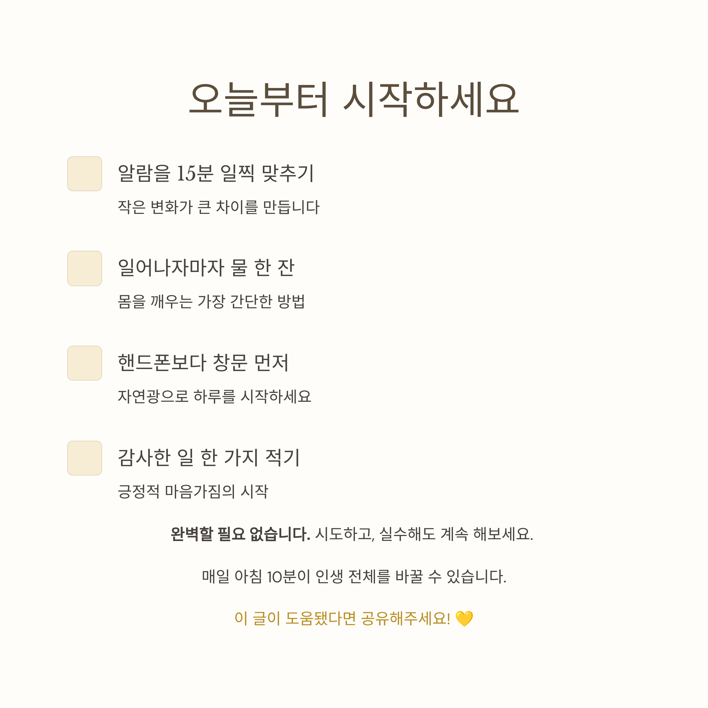 지금부터 실천하고 싶은 분들을 위한 초간단 팁 모음이에요. 아래 리스트 중 하나만이라도 오늘 시작해 보세요.