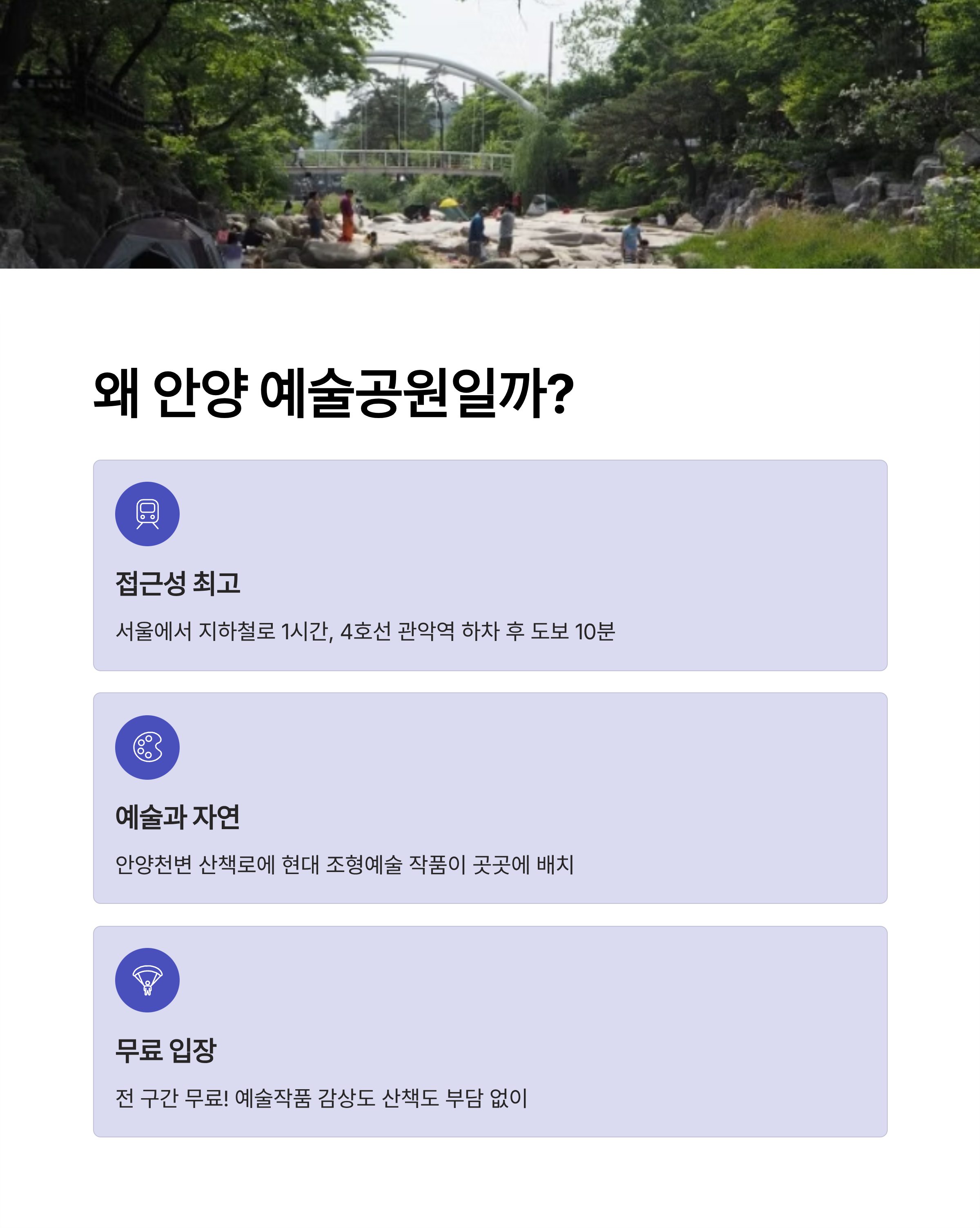 이번 글에서는 누구와 함께여도 만족할 수 있는 안양 예술공원 나들이 코스를 소개해드릴게요.