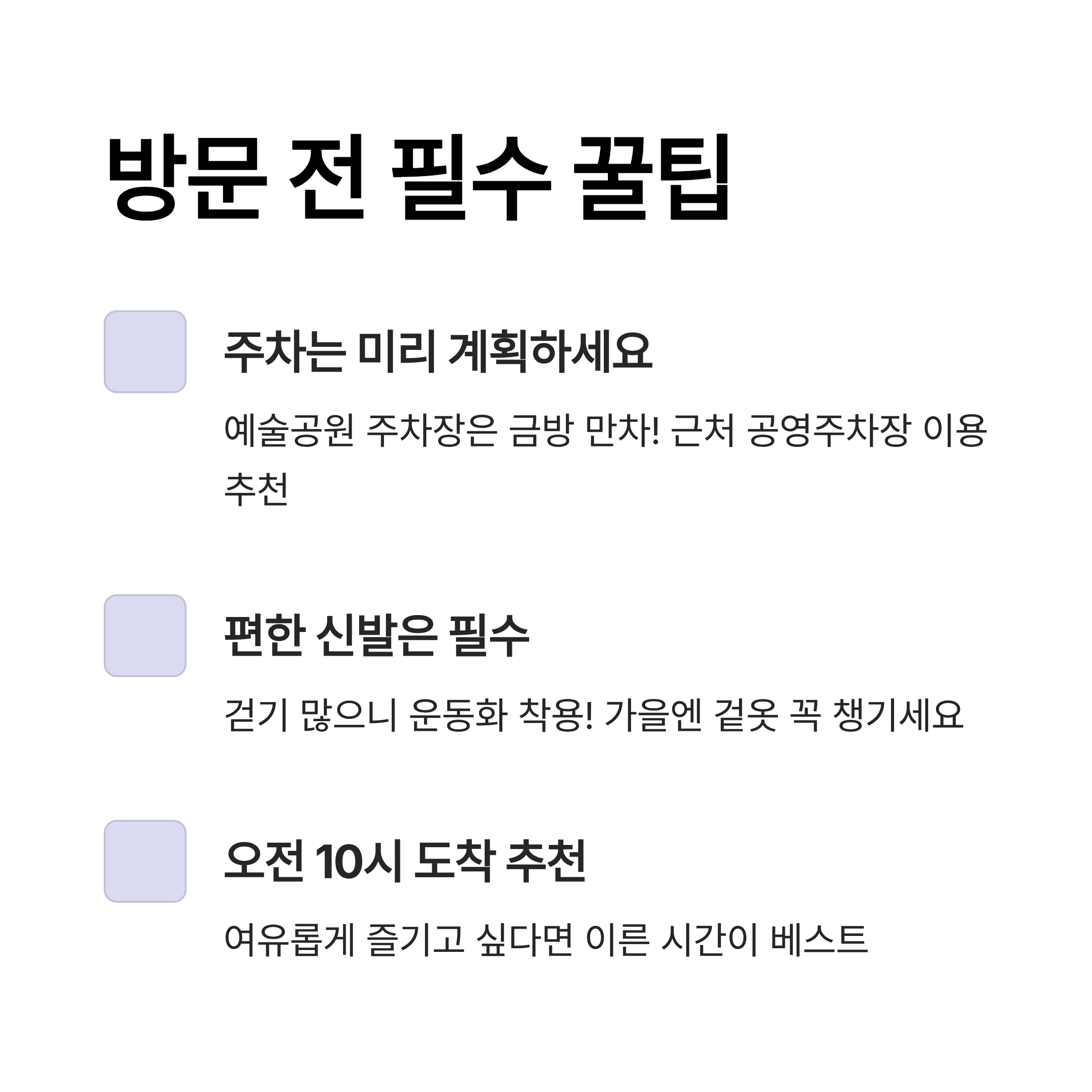 꿀팁 모음 (주차·복장·시간대)