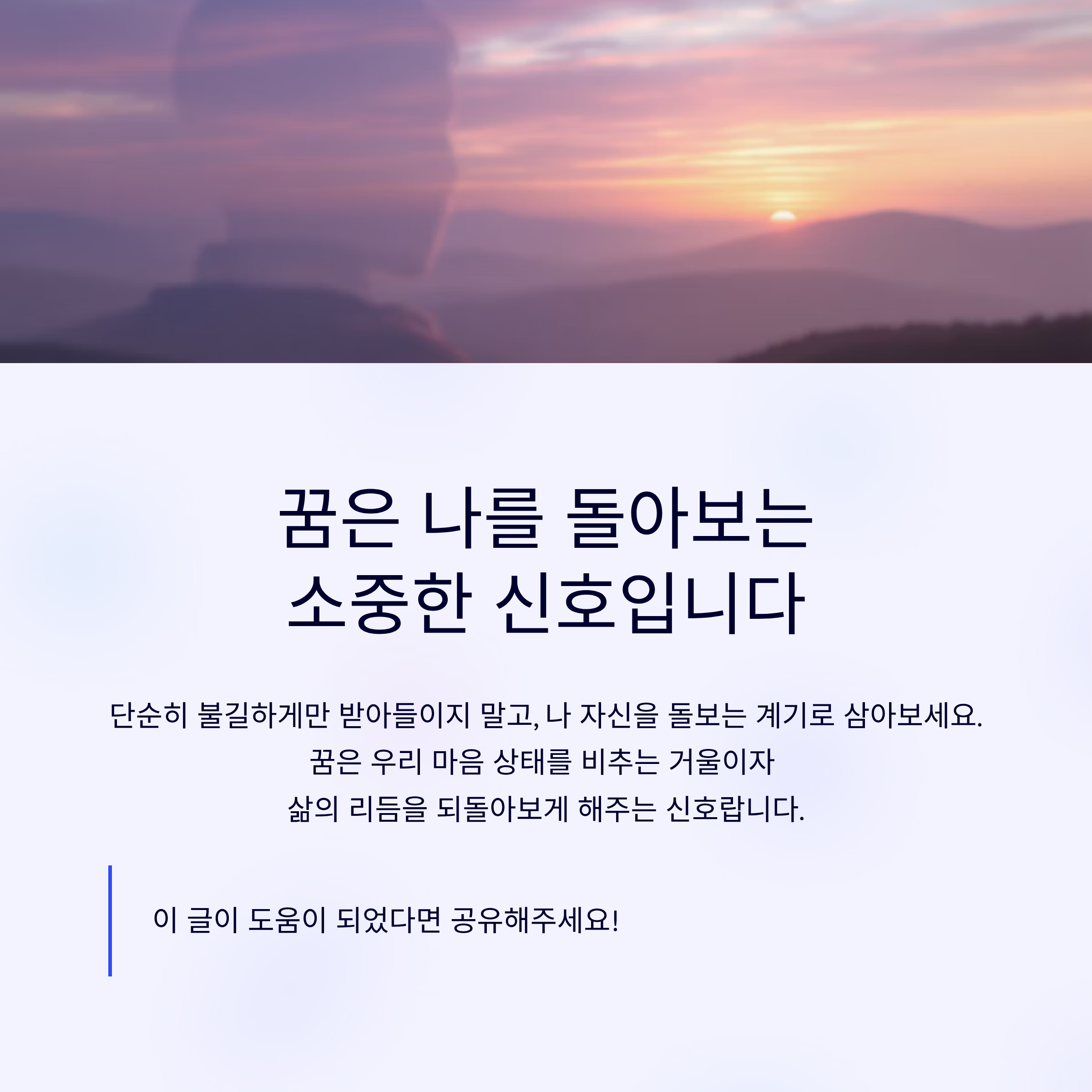 꿈은 우리의 마음 상태를 비추는 거울일 수도 있고, 삶의 리듬을 되돌아보게 해주는 신호일 수도 있어요.