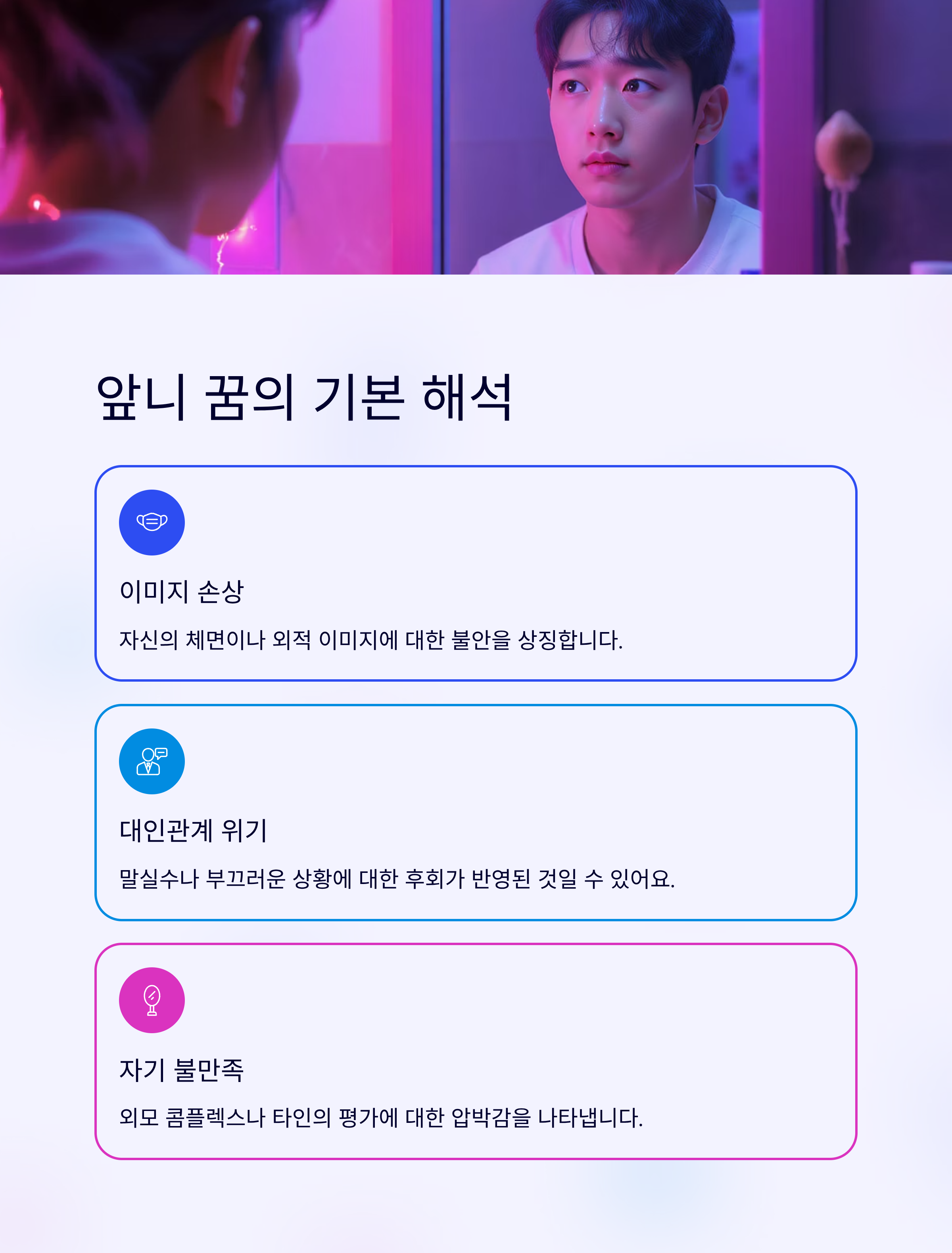 앞니가 깨지는 꿈도 내면의 심리 상태를 보여주는 대표적인 예 중 하나예요.