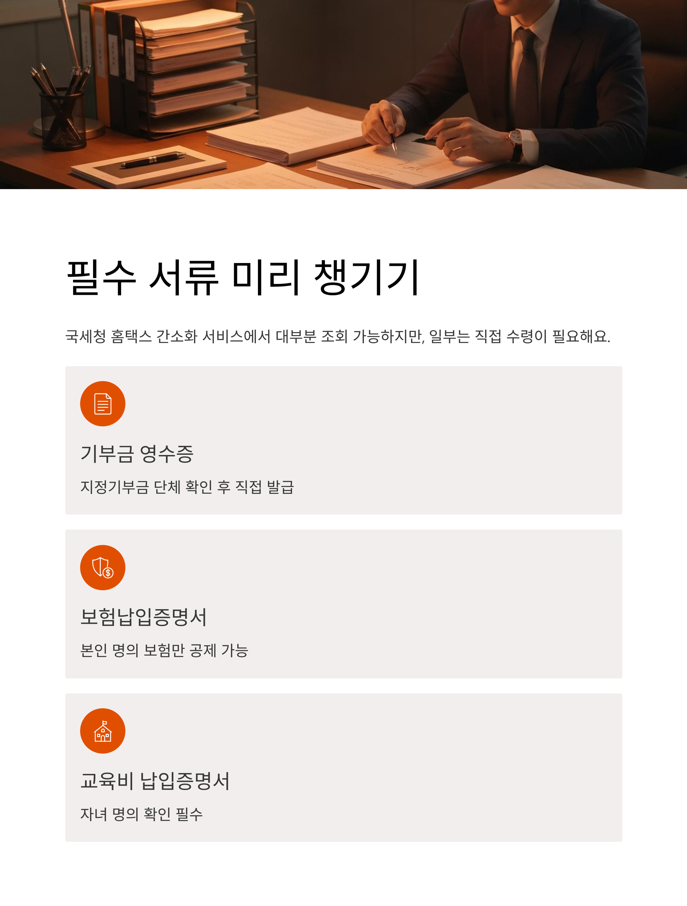 | 공제 항목 | 준비 서류 | 주의사항 |