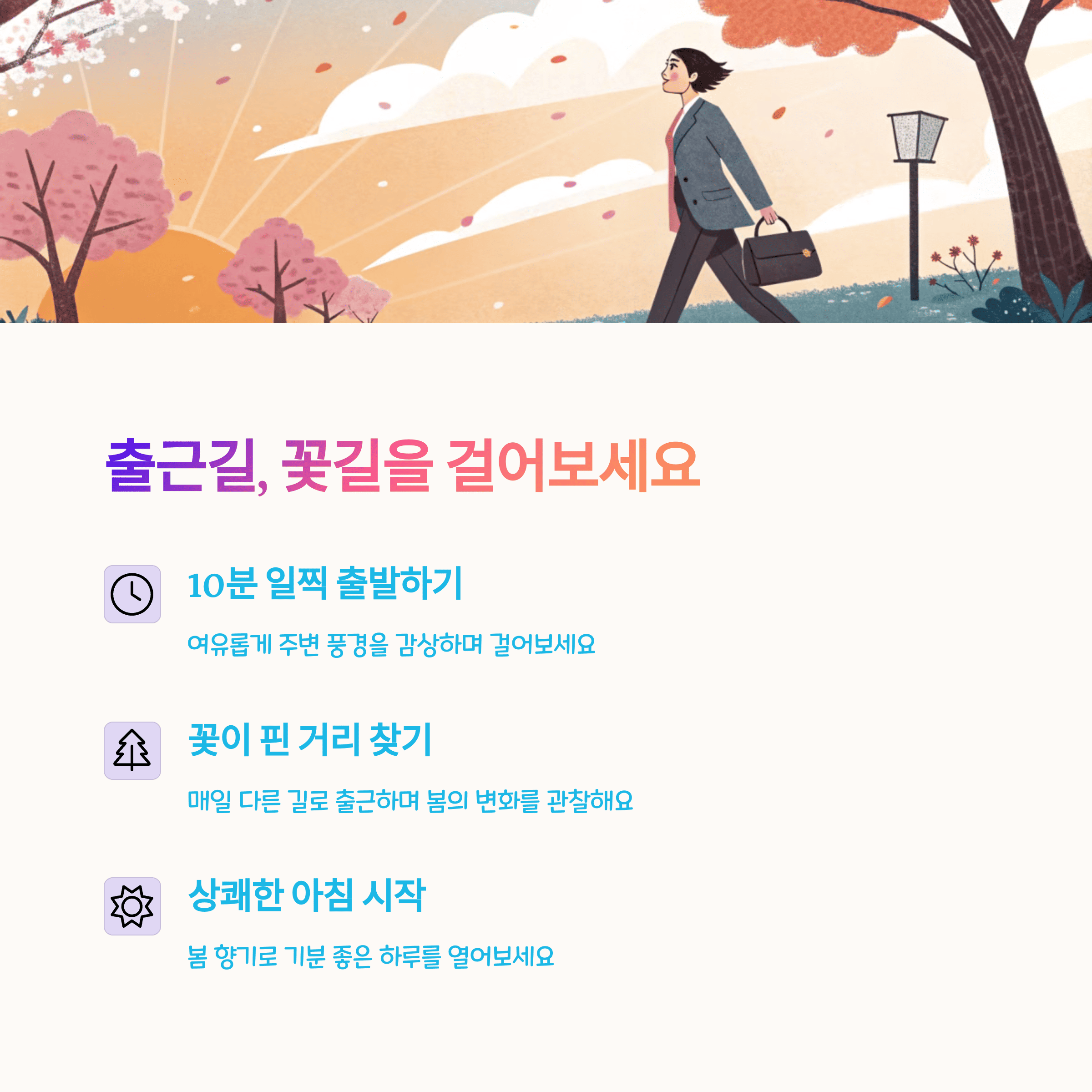 1. 출근길, 봄바람과 함께 걸어보기 🚶♀️🌷