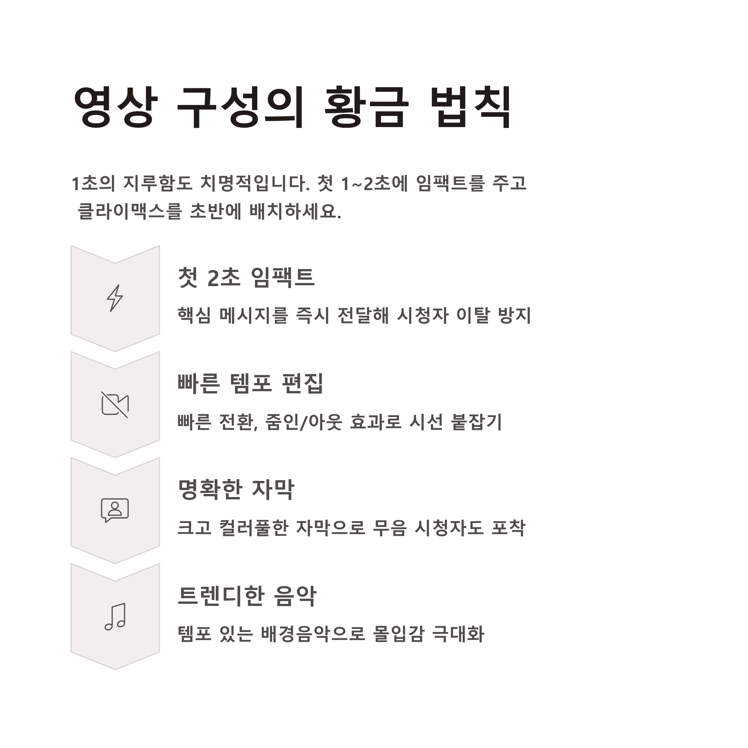 자막과 사운드, 빠른 템포의 컷 편집은 시선을 붙잡는 핵심 도구입니다.