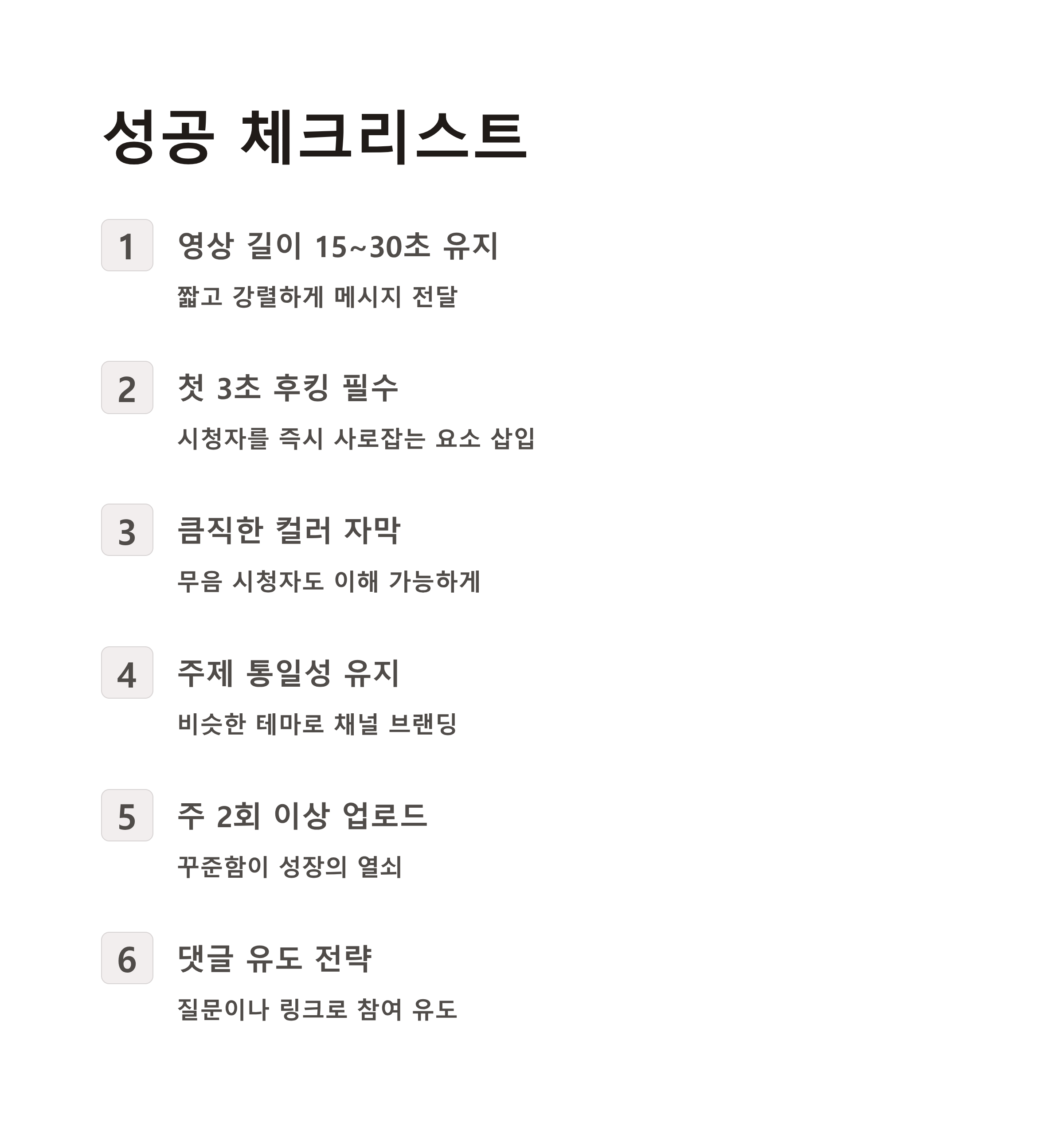 채널의 주제 일관성도 ‘브랜드화’에 큰 영향을 미치며, 구독 전환율을 높이는 핵심입니다.