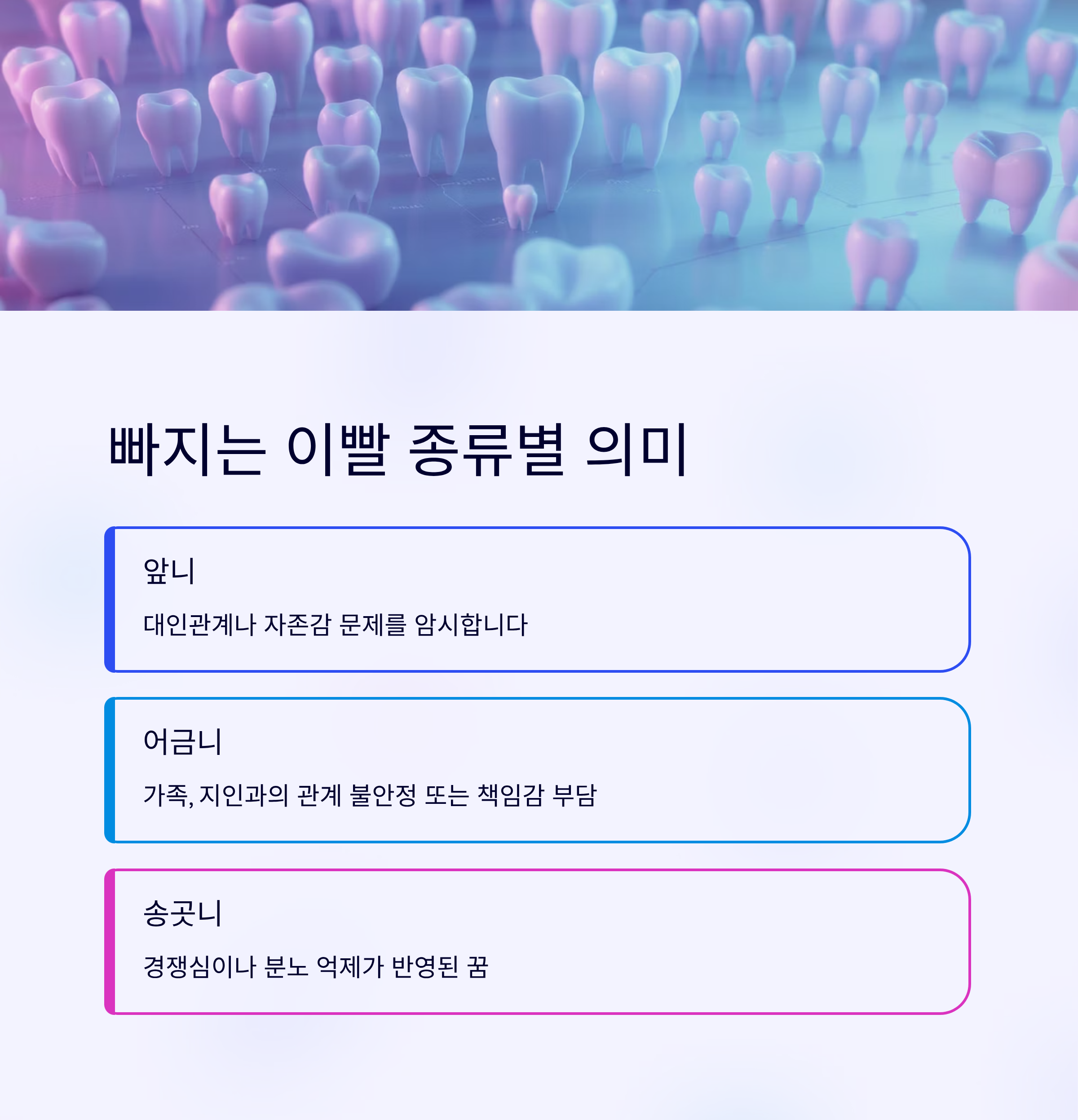 | 앞니 | 대인관계나 자존감 문제를 암시 |