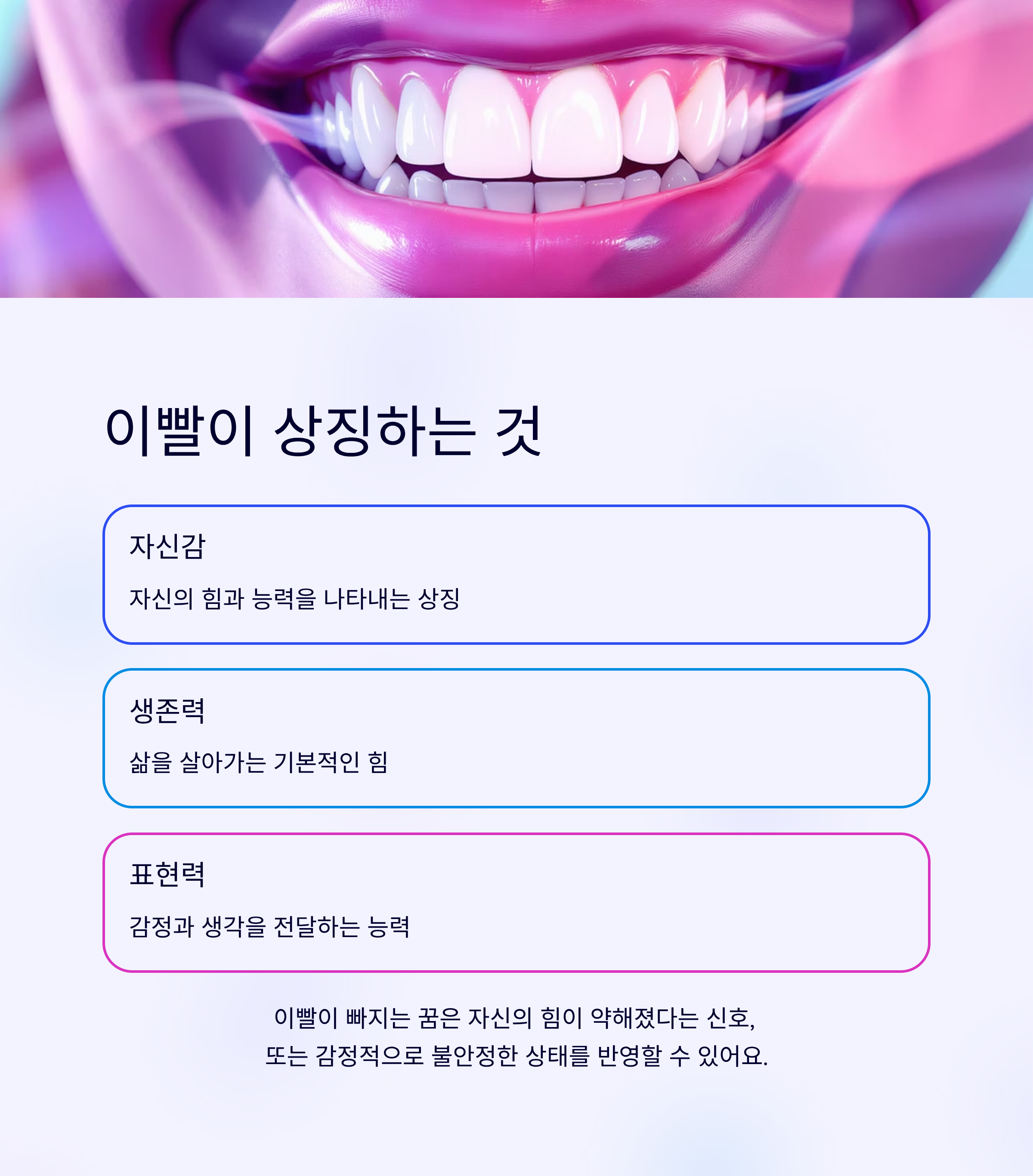 이빨이 빠지는 꿈에서 가장 중요한 건 그때의 감정이에요.