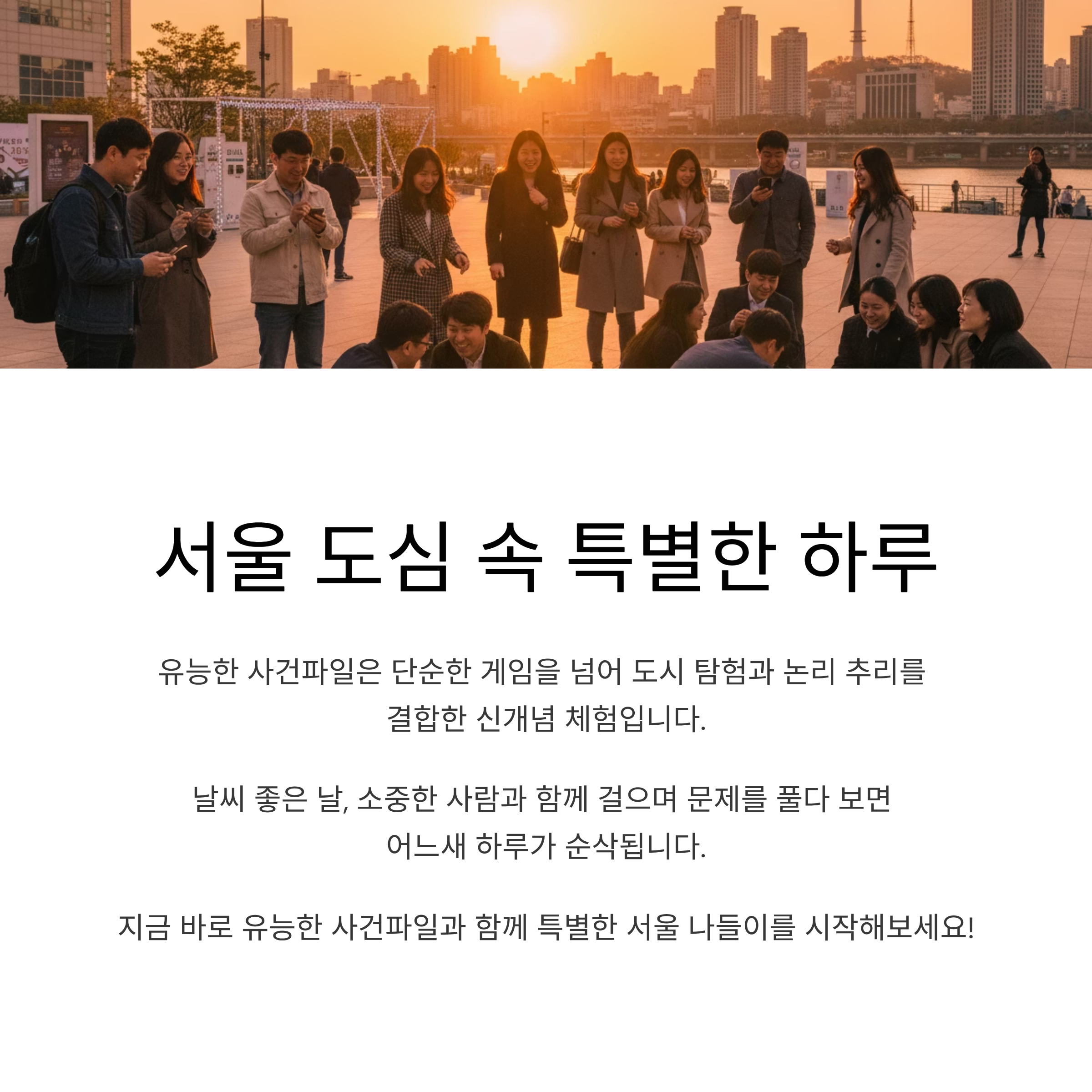 유능한 사건파일은 단순한 게임을 넘어 ‘도시 탐험’과 ‘논리 추리’를 결합한 신개념 체험이었어요.