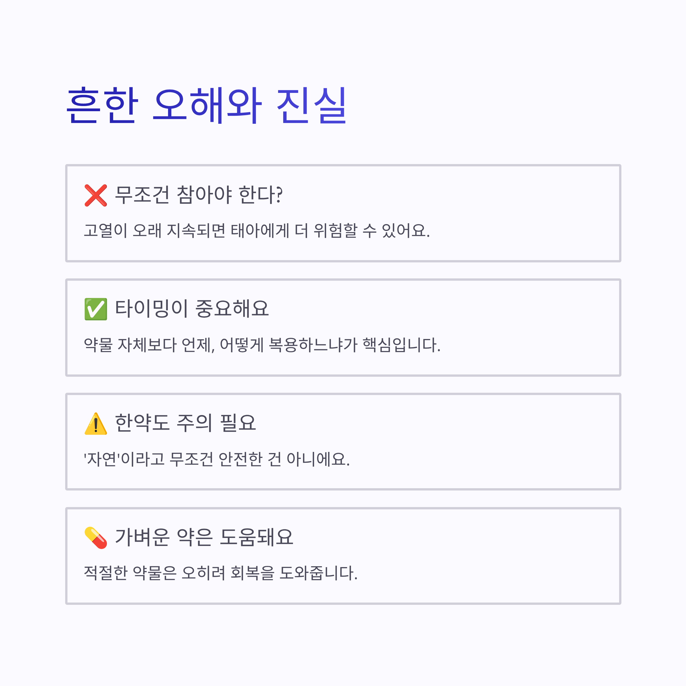 - 가벼운 약물은 오히려 회복을 도와요.