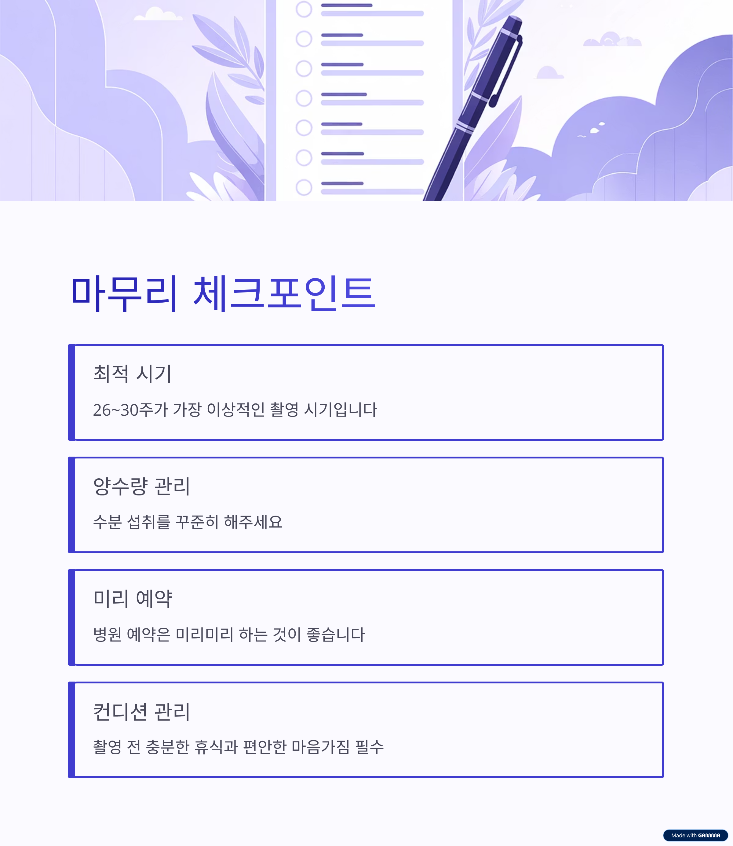 다음 체크리스트를 참고해서 후회 없는 초음파 촬영을 준비해 보세요.