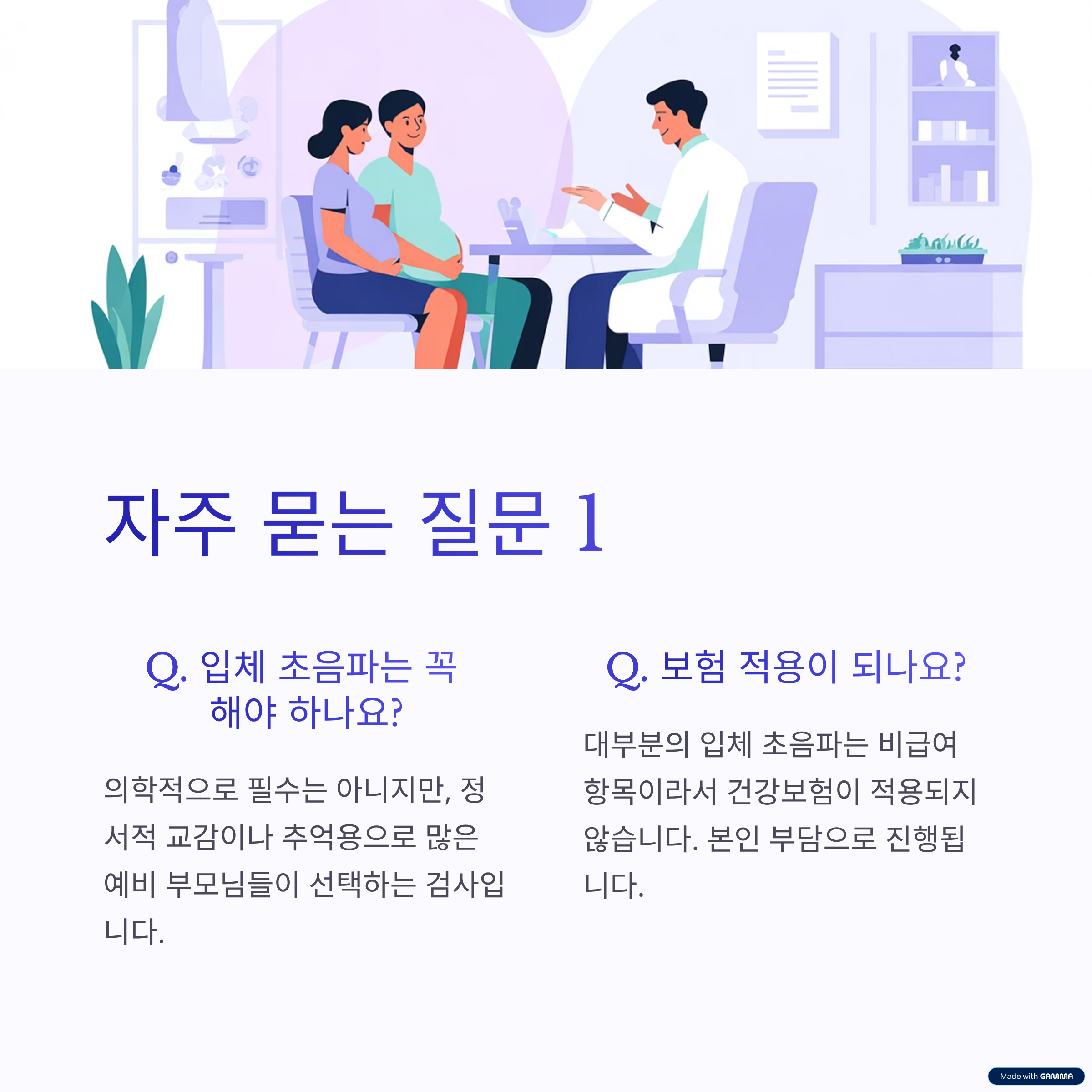 의학적으로 필수는 아니지만, 정서적 교감이나 추억용으로 많은 예비 부모님들이 선택하는 검사입니다.