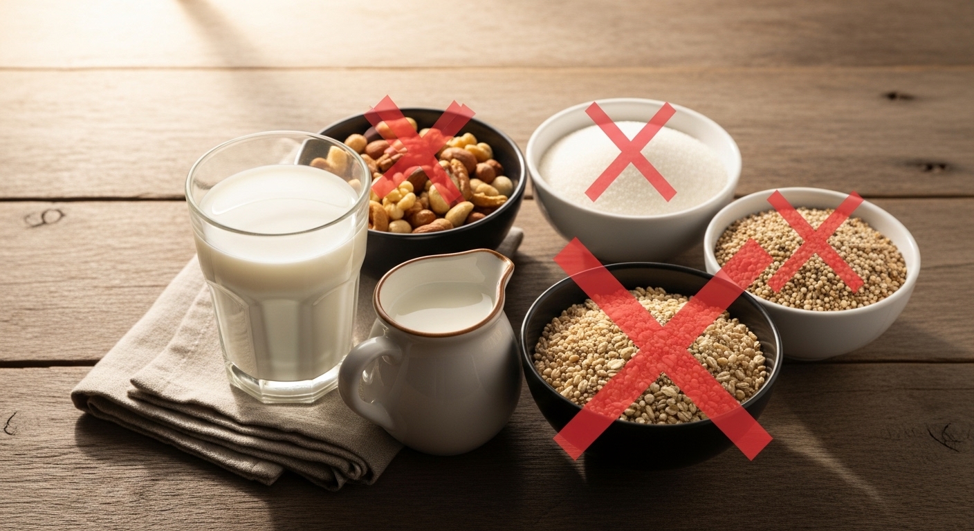 | 견과류, 통곡물 | 식이섬유 과잉으로 장에 자극 |