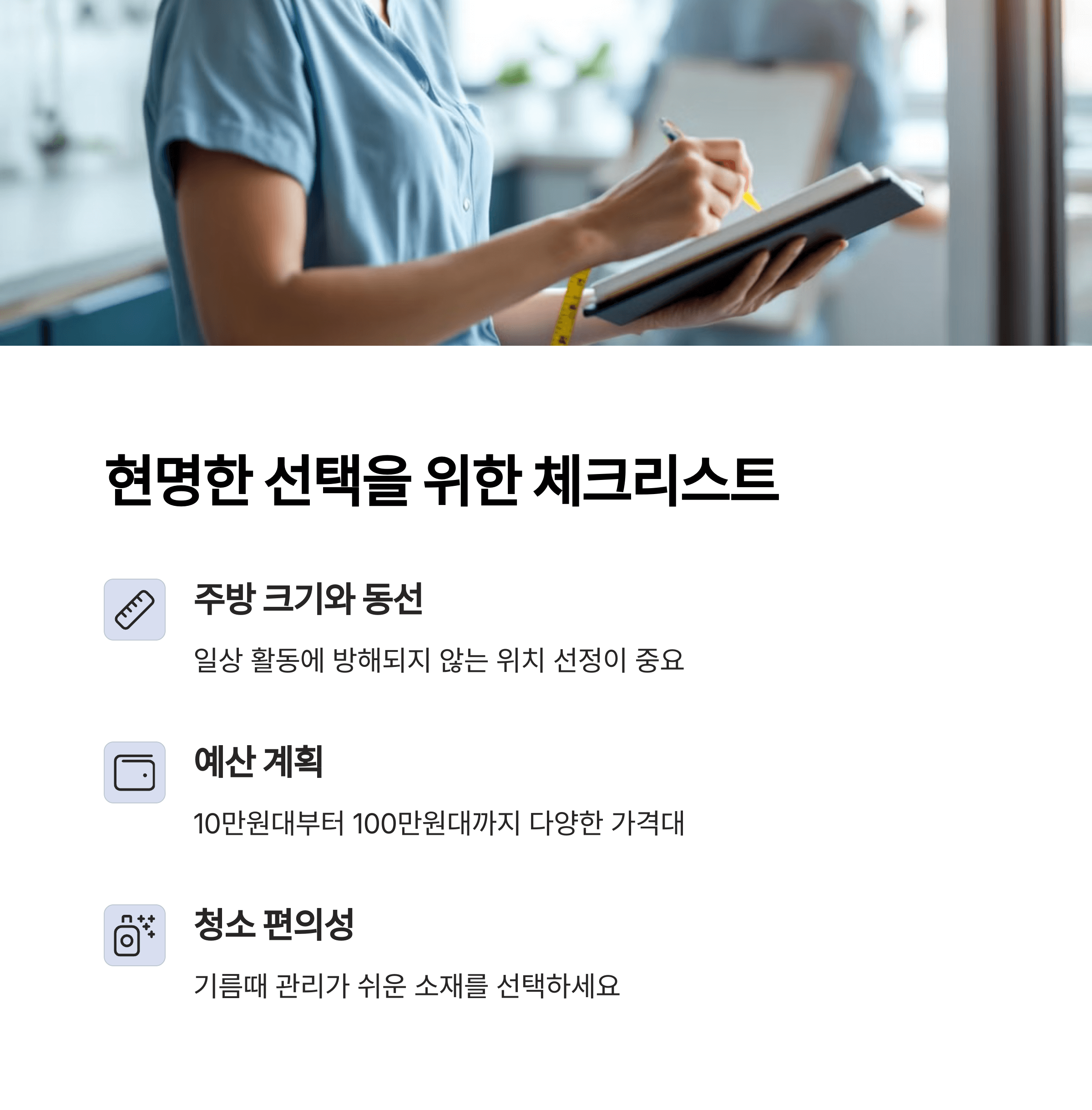 자신의 주방 크기와 라이프스타일을 먼저 고려한 후