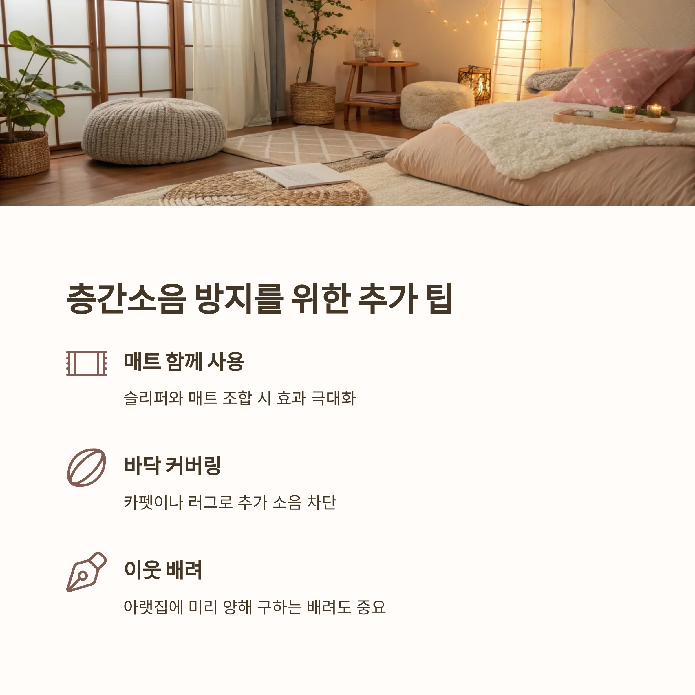 온 집안을 돌아다니면서 생기는 소리, 진짜 별거 아닌 것 같아도 누군가에겐 불편함이 되쥬.