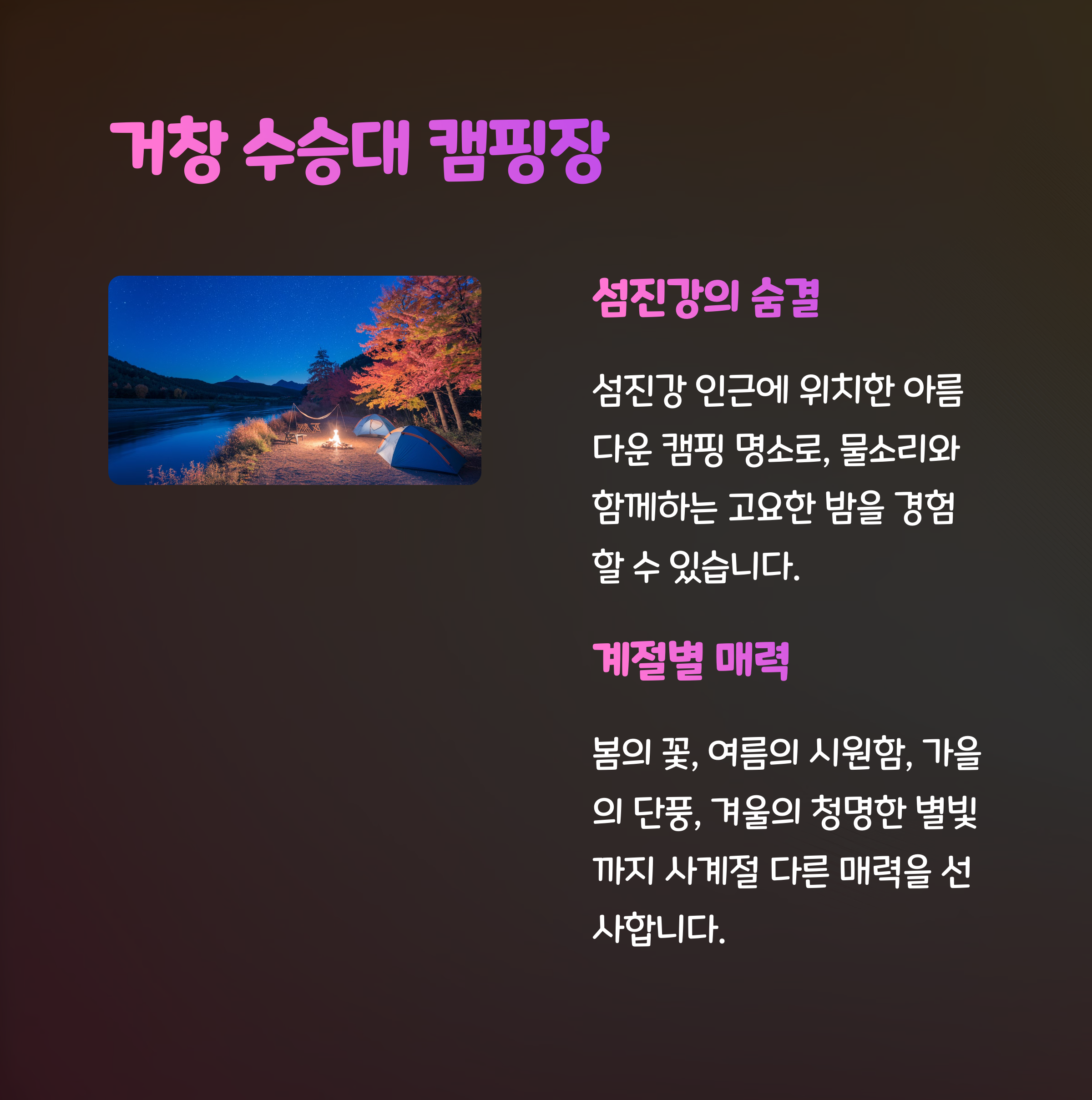 4. 경남 거창 '수승대 오토캠핑장' – 별 보는 명당 + 감성 조명 💡