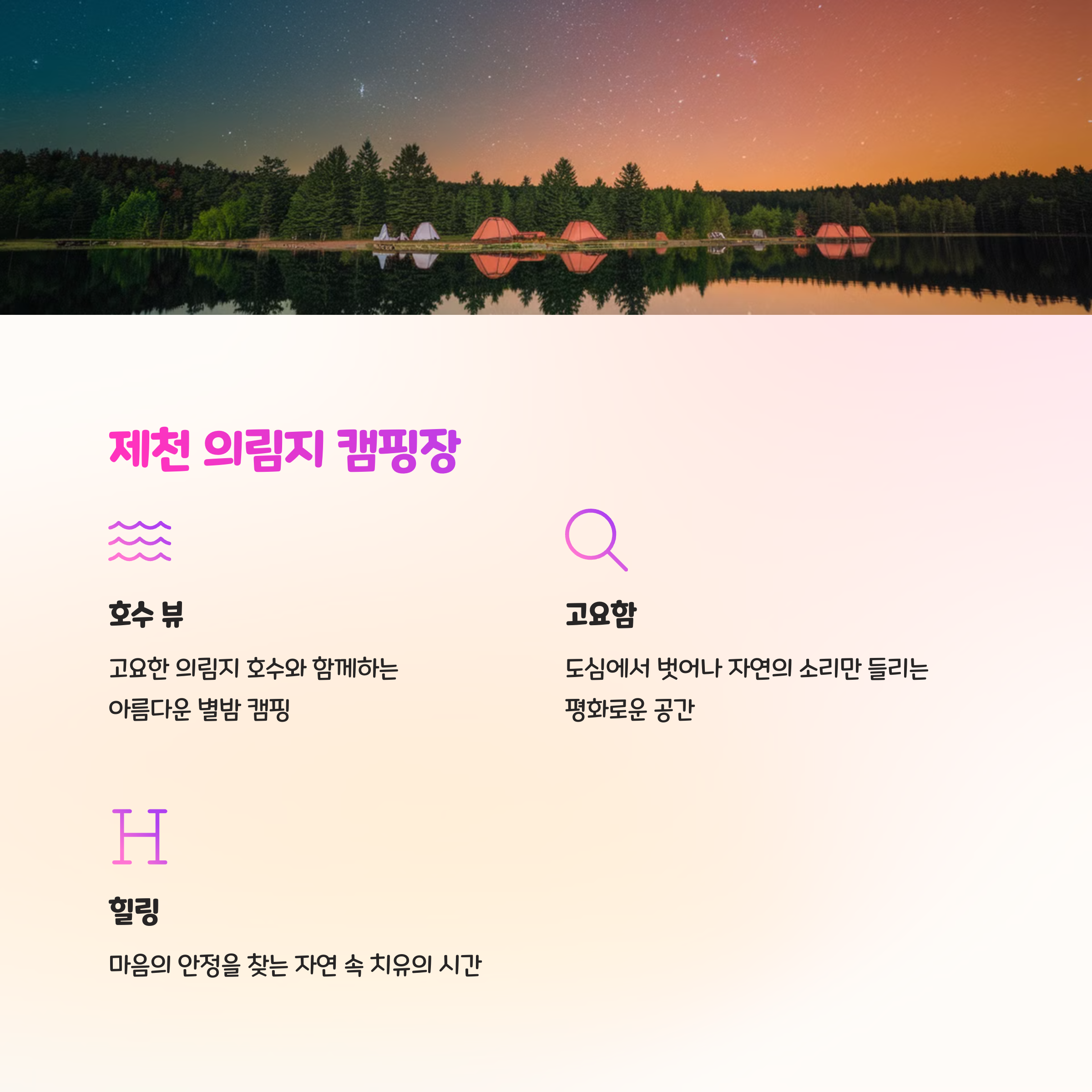 3. 충북 제천 '의림지 별빛캠핑장' – 호수+별 감성 미쳤다요… 🌠