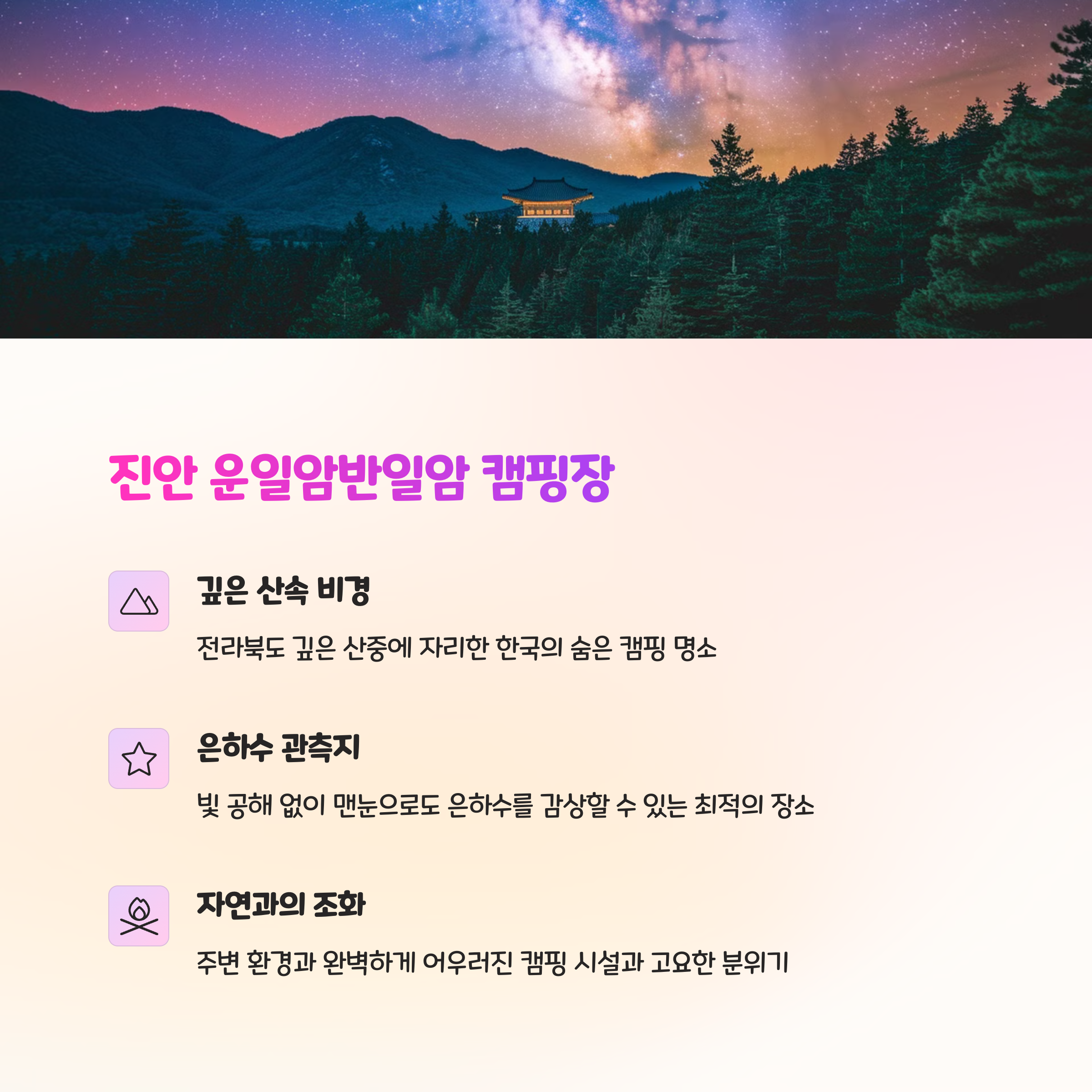 2. 전북 진안 '운일암반일암 오토캠핑장' – 감성 풀장착 숲속 캠핑지 🌲