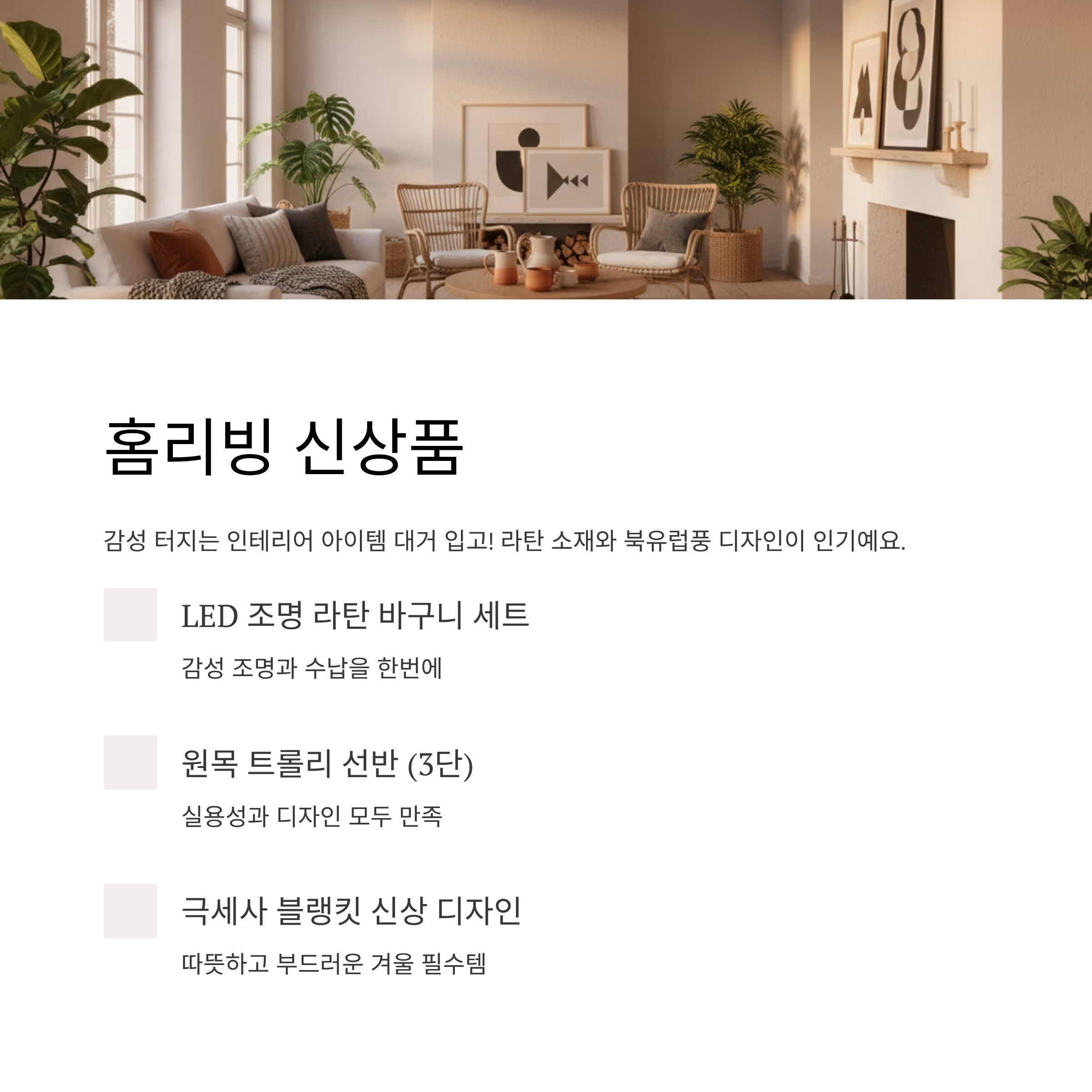 특히 감성 있는 라탄 소재나 북유럽풍 디자인 가구들이 인기 많았어요.