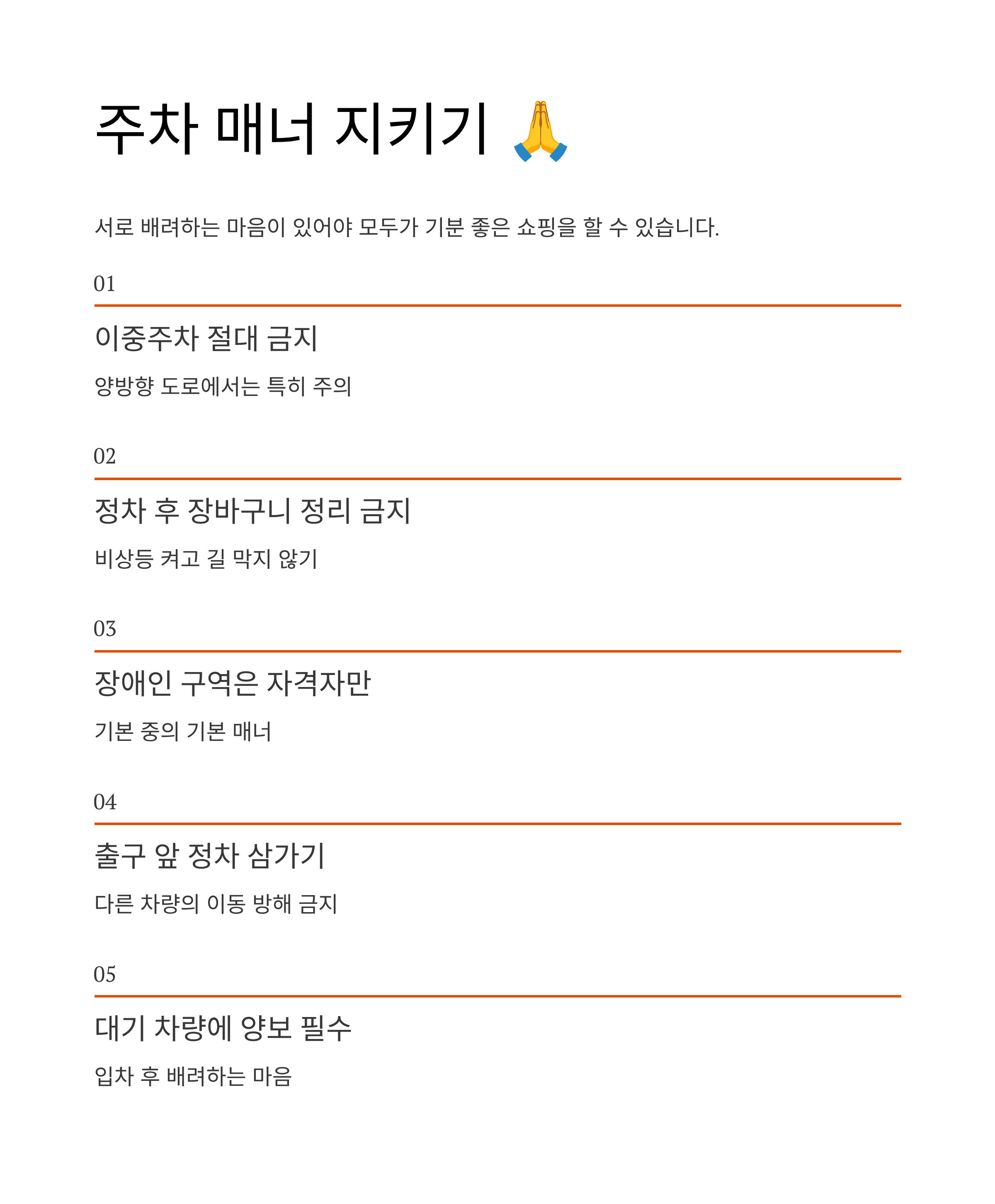 - 비상등 켜고 정차 후 장바구니 정리하지 않기