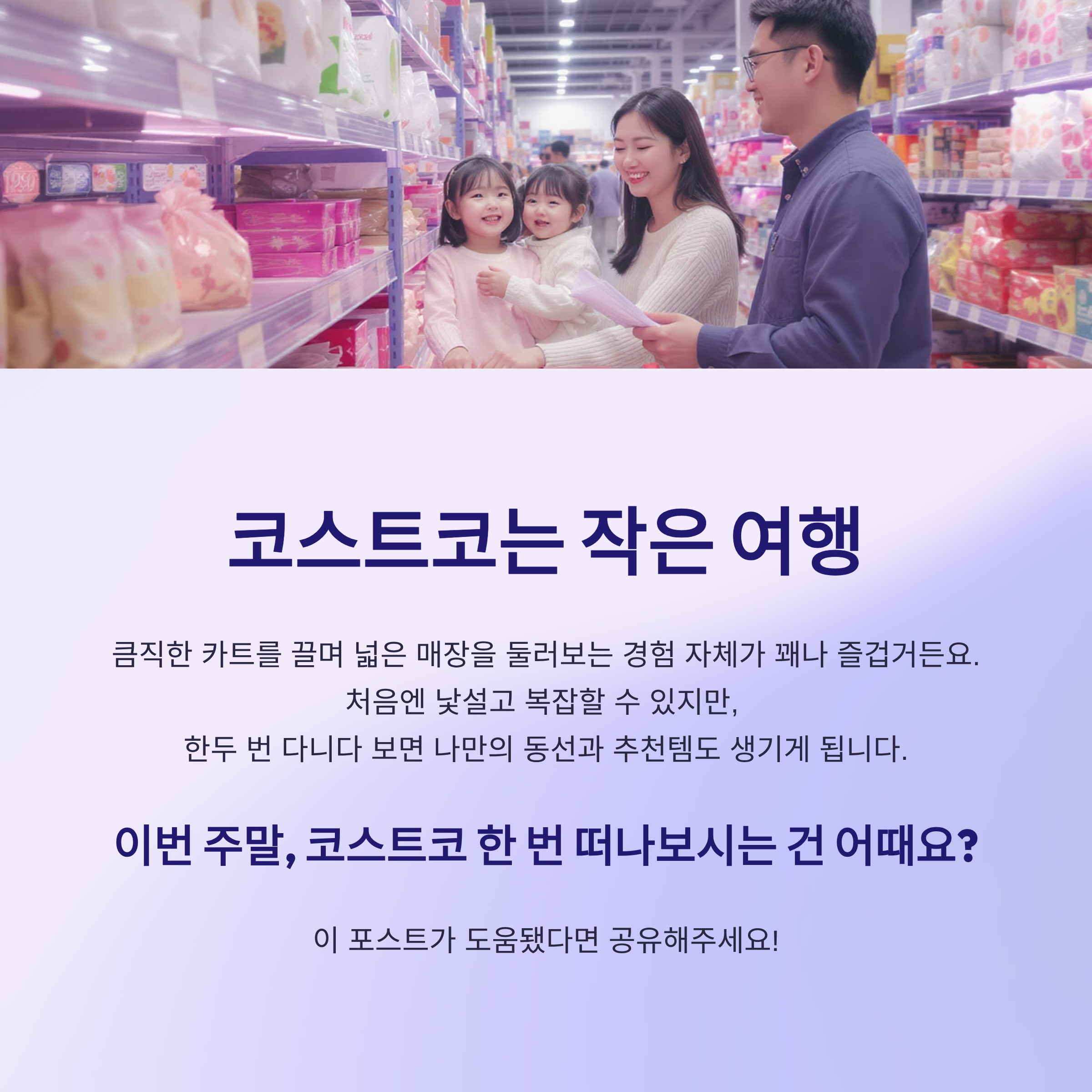 코스트코는 단순히 장보는 공간을 넘어 작은 여행 같기도 해요.