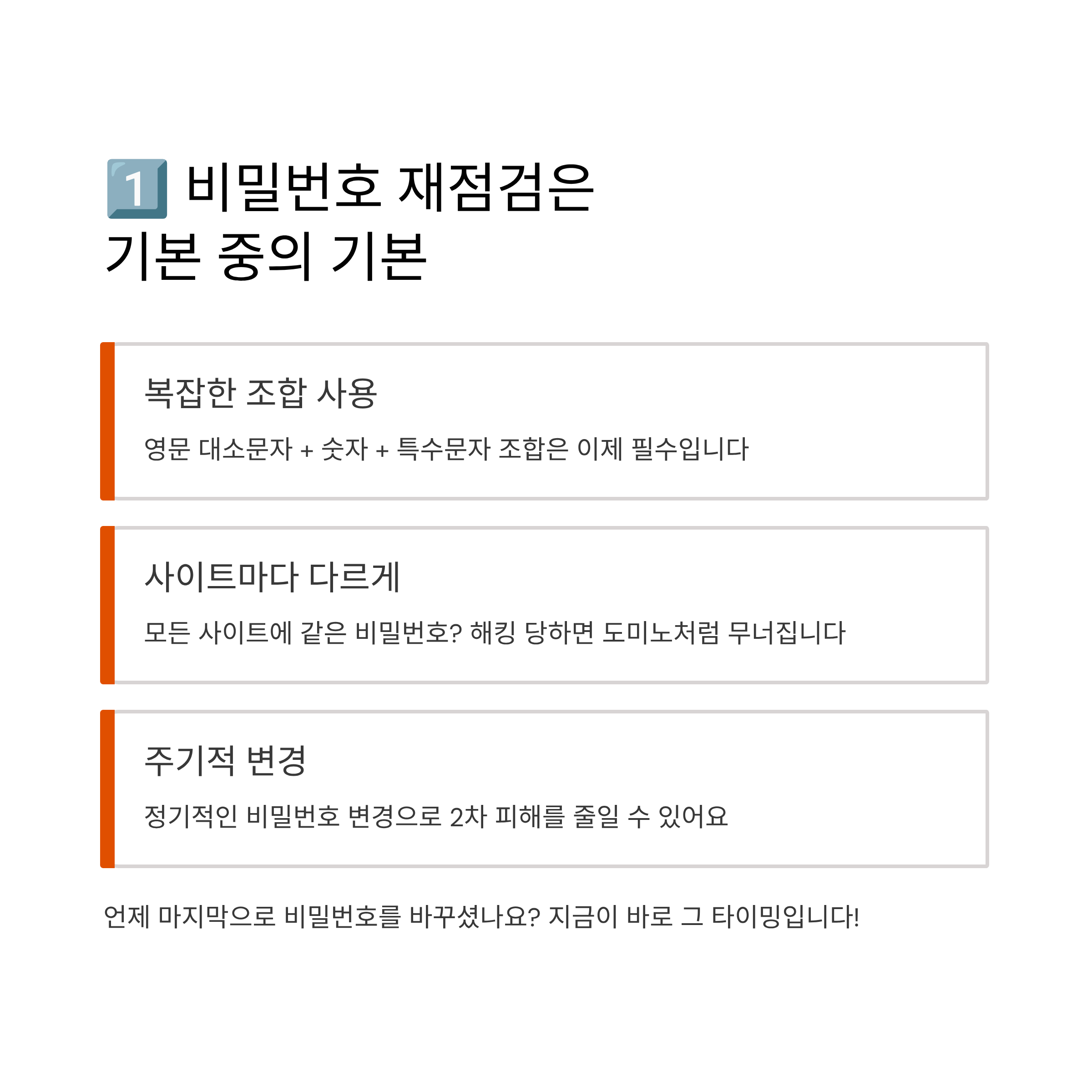 를 설정하고, 주기적으로 변경하는 습관을 들이세요.
