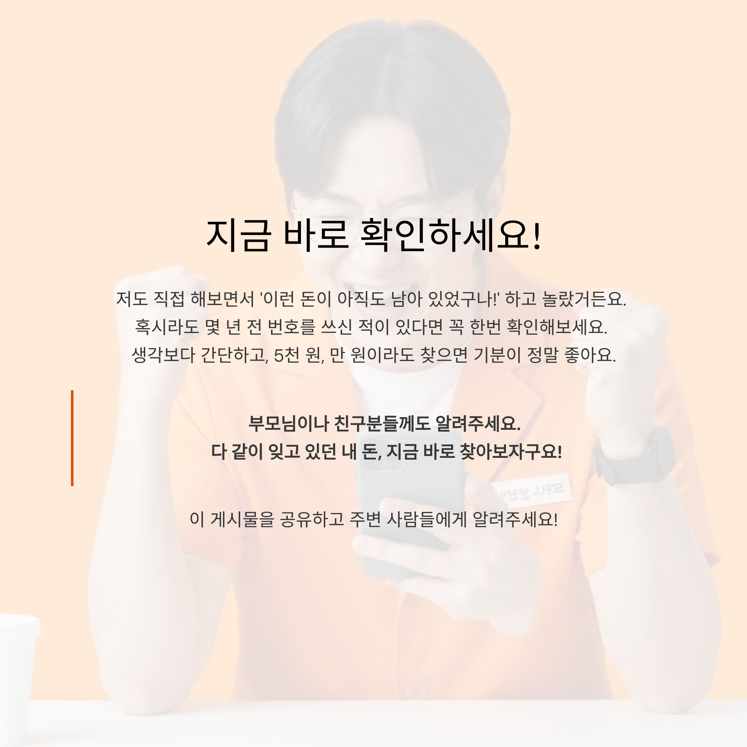 부모님이나 친구분들께도 알려주세요. 다 같이 잊고 있던 내 돈, 지금 바로 찾아보자구요!